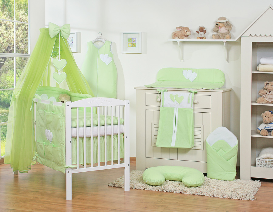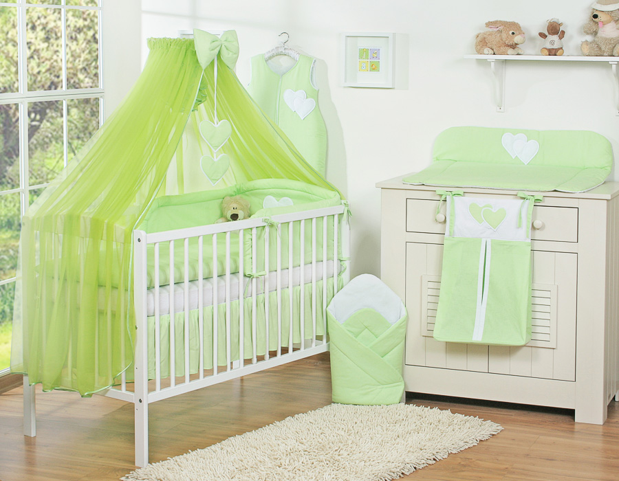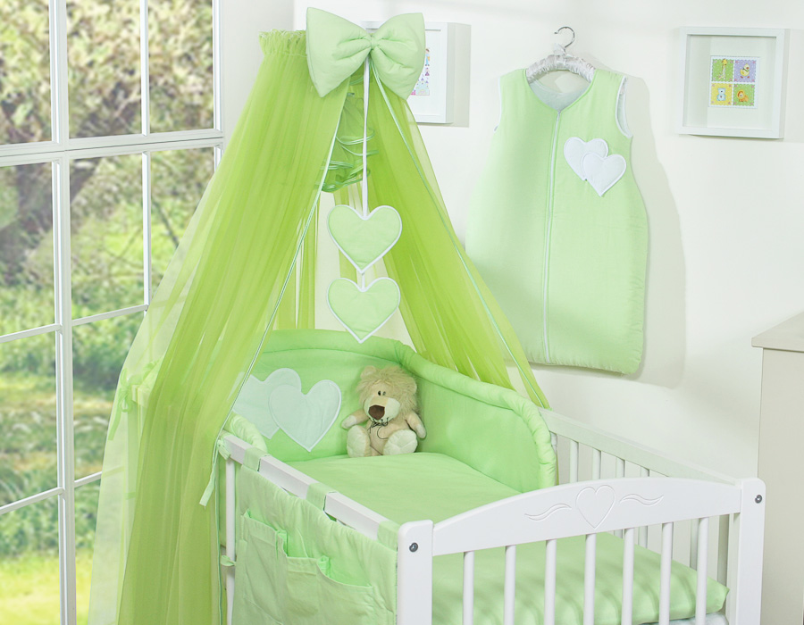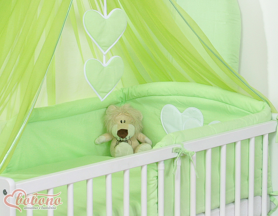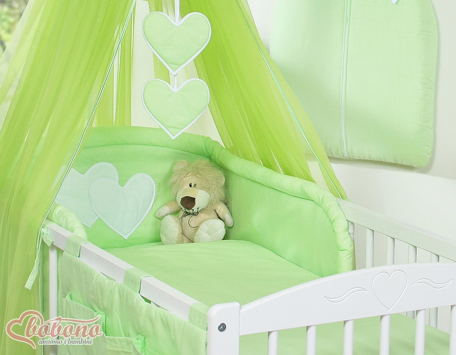 Kleinbaby.nl » Beddengoed voor Ledikant » Beddengoed Set Collectie Harten » 120cm ledikant Beddengoed Set » Beddengoed 7 st met Klamboe - Harten » Beddengoed voor Ledikant 7 st met Hemel Klamboe - Harten Groen