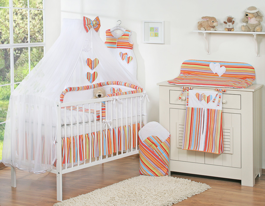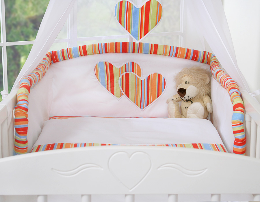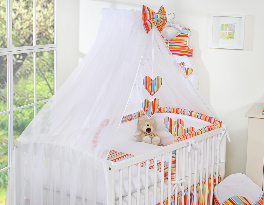 Kleinbaby.nl » Beddengoed voor Ledikant » Beddengoed Set Collectie Harten » 120cm ledikant Beddengoed Set » Beddengoed 7 st met Klamboe - Harten » Beddengoed voor Ledikant 7 st met Hemel Klamboe - Harten Oranje Snijder
