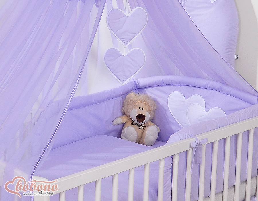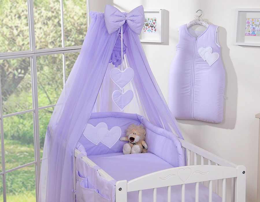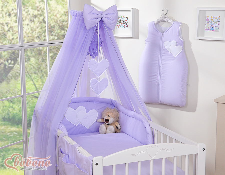 Kleinbaby.nl » Beddengoed voor Ledikant » Beddengoed Set Collectie Harten » 120cm ledikant Beddengoed Set » Beddengoed 7 st met Klamboe - Harten » Beddengoed voor Ledikant 7 st met Hemel Klamboe - Harten Purper