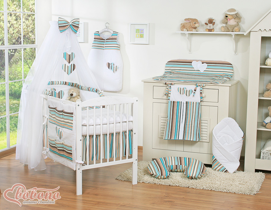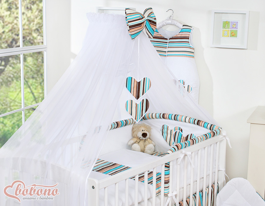 Kleinbaby.nl » Beddengoed voor Ledikant » Beddengoed Set Collectie Harten » 140cm ledikant Beddengoed Set » Beddengoed 11 st met Klamboe - Harten » Beddengoed voor Ledikant met Klamboe Bedomrander - Harten Bruin Snijder