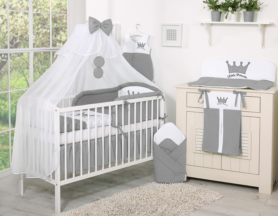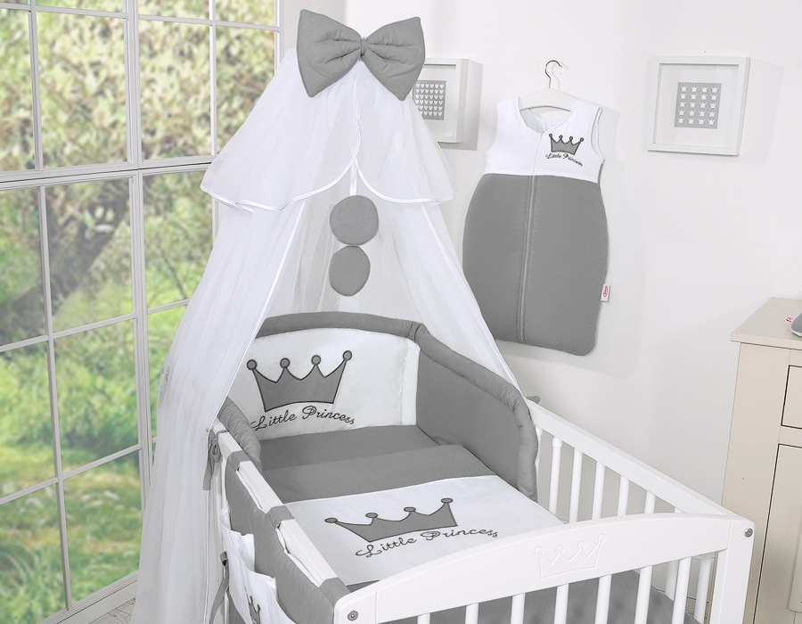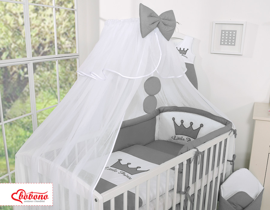 Kleinbaby.nl » Beddengoed voor Ledikant » Beddengoed Set Collectie LITTLE PRINCE / PRINCESS » Baby beddengoed for Ledikant 120cm » Beddengoed 5 st met Klamboe » Beddengoedset met Hemeltje Klamboe voor Babybed 5 st - Antraciet Little Prince Princess