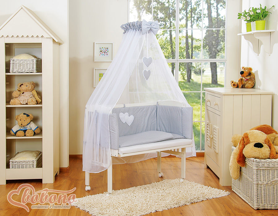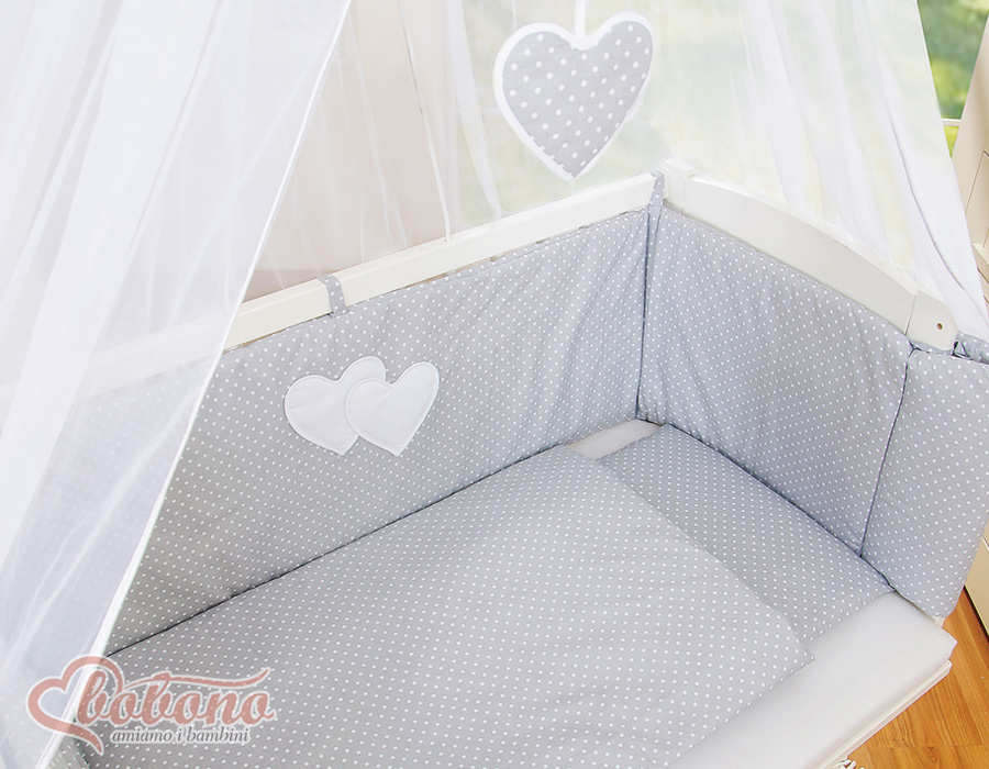 Kleinbaby.nl » Ledikanten 120x60 cm » Bijzetbed » Beddengoed voor Bijzetbed » Beddengoedset voor Bedkant Wieg 6 st FABIO Grijs Polkaprikker
