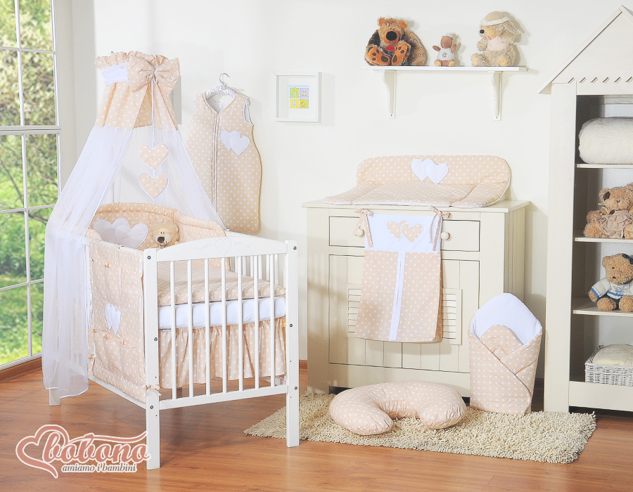 Kleinbaby.nl » Beddengoed voor Ledikant » Beddengoed Set Collectie Harten » 140cm ledikant Beddengoed Set » Beddengoed 11 st met Hemeltje - Harten » Beddengoedset voor Kinderbed 11 st met Hemeltje - Harten Beige Polkaprikker
