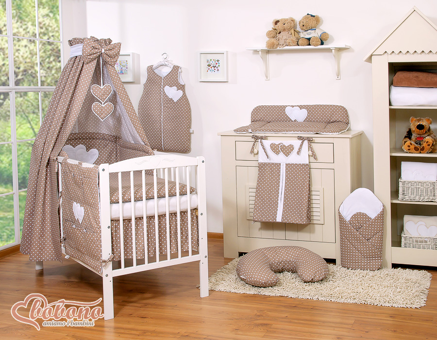 Kleinbaby.nl » Beddengoed voor Ledikant » Beddengoed Set Collectie Harten » 140cm ledikant Beddengoed Set » Beddengoed 11 st met Hemeltje - Harten » Beddengoedset voor Kinderbed 11 st met Hemeltje - Harten Bruin Polkaprikker
