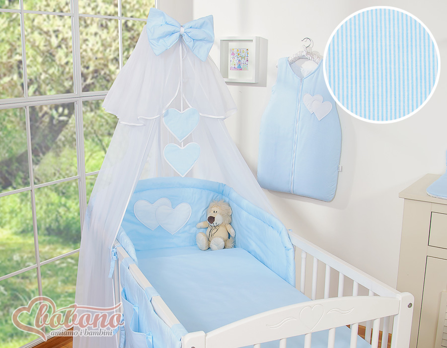 Kleinbaby.nl » Beddengoed voor Ledikant » Beddengoed Set Collectie Harten » 120cm ledikant Beddengoed Set » Beddengoed 11 st met Klamboe - Harten » Beddengoedset voor Kinderbed 11 st met Klamboe - Harten Blauw Snijder