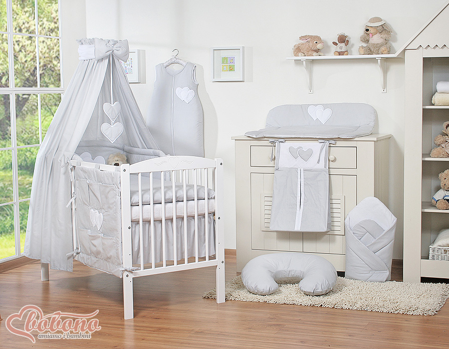 Kleinbaby.nl » Beddengoed voor Ledikant » Beddengoed Set Collectie Harten » 120cm ledikant Beddengoed Set » Beddengoed 11 st met Hemeltje - Harten » Beddengoedset voor Ledikant 11 st met Hemeltje - Harten Grijs