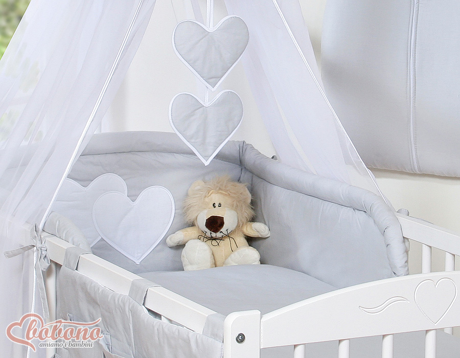 Kleinbaby.nl » Beddengoed voor Ledikant » Beddengoed Set Collectie Harten » 140cm ledikant Beddengoed Set » Beddengoed 11 st met Hemeltje - Harten » Beddengoedset voor Ledikant 11 st met Hemeltje - Harten Grijs