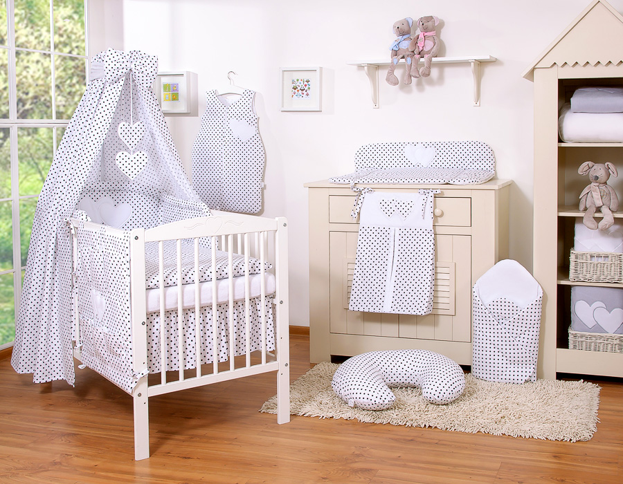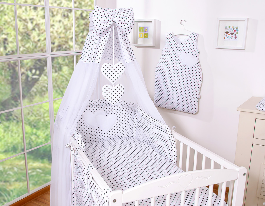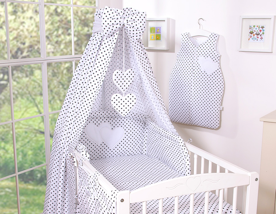 Kleinbaby.nl » Beddengoed voor Ledikant » Beddengoed Set Collectie Harten » 120cm ledikant Beddengoed Set » Beddengoed 11 st met Hemeltje - Harten » Beddengoedset voor Ledikant 11 st met Hemeltje - Harten Zwart Polkaprikker