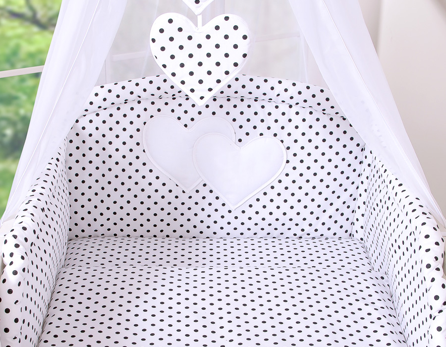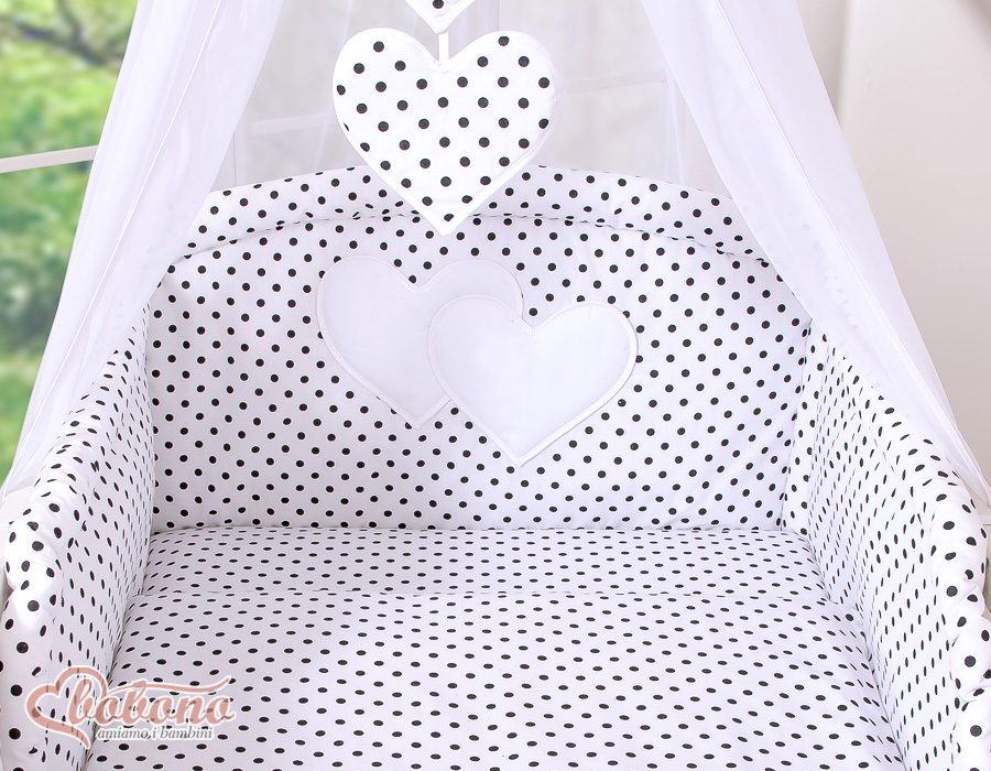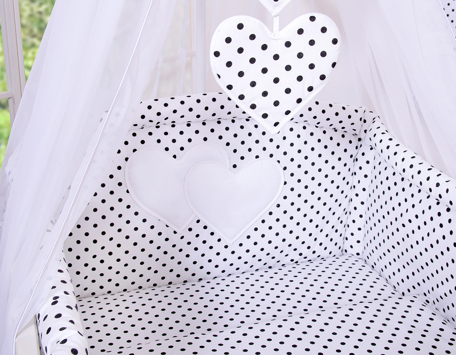 Beddengoedset voor Ledikant 11 st met Hemeltje - Harten Zwart Polkaprikker