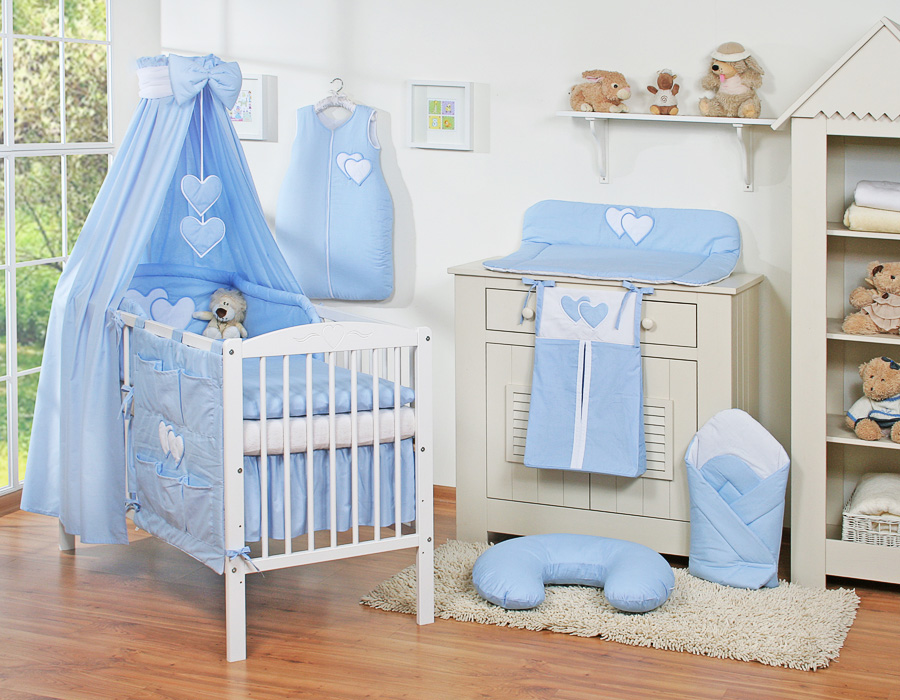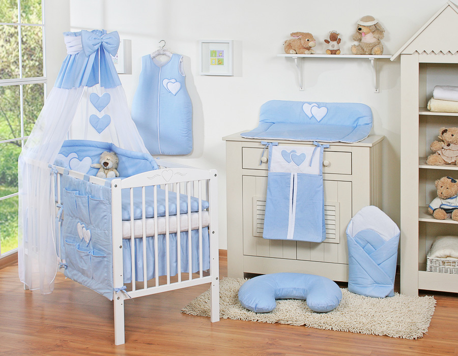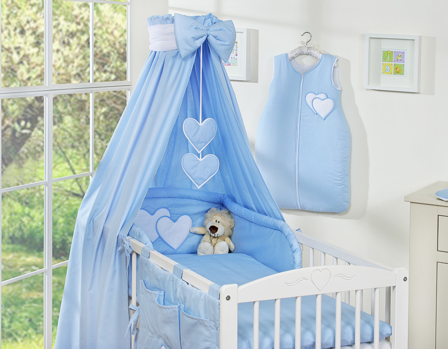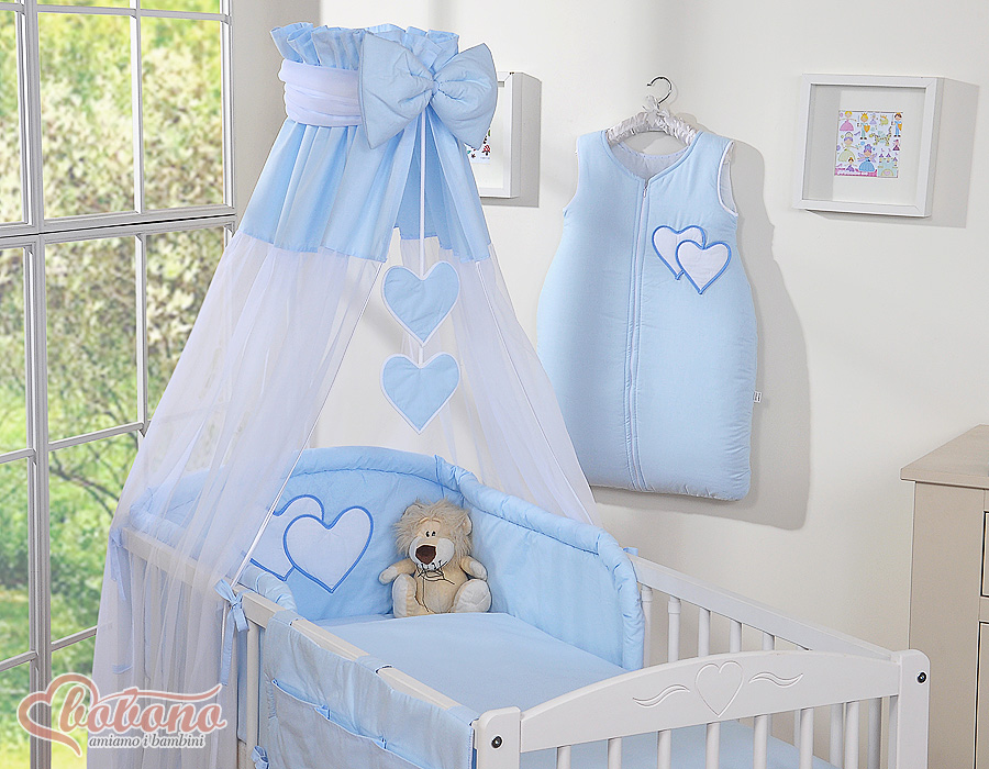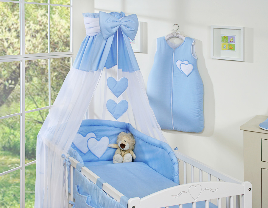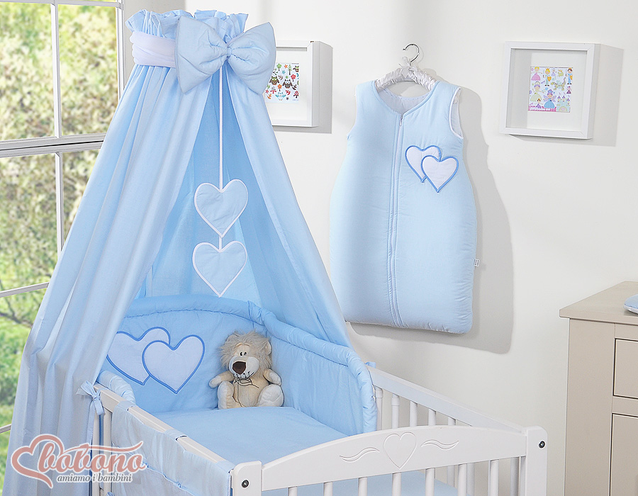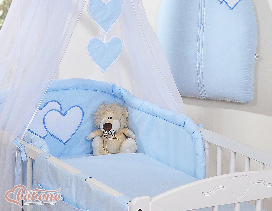 Kleinbaby.nl » Beddengoed voor Ledikant » Beddengoed Set Collectie Harten » 120cm ledikant Beddengoed Set » Beddengoed 11 st met Hemeltje - Harten » Beddengoedset voor Ledikant 11 st met Hemeltje met sluierstang - Harten Blauw
