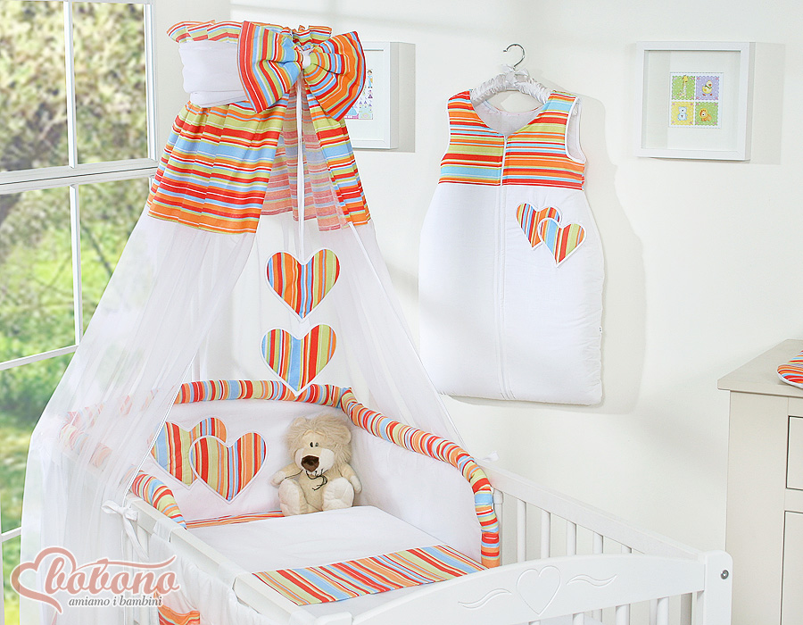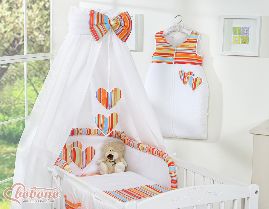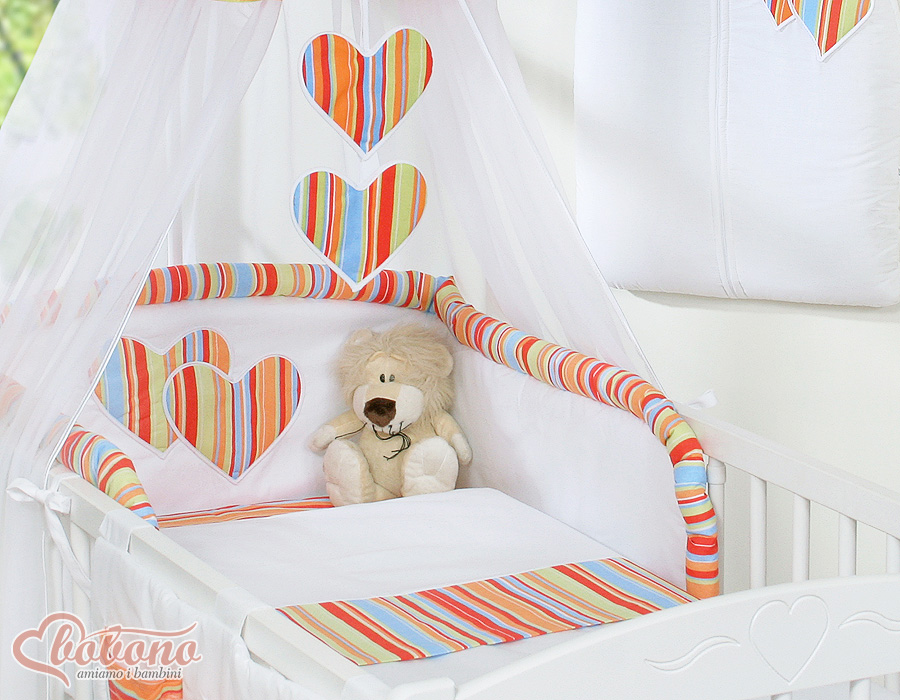 Kleinbaby.nl » Beddengoed voor Ledikant » Beddengoed Set Collectie Harten » 140cm ledikant Beddengoed Set » Beddengoed 11 st met Hemeltje - Harten » Beddengoedset voor Ledikant 11 st met Hemeltje met sluierstang - Harten Oranje Snijder