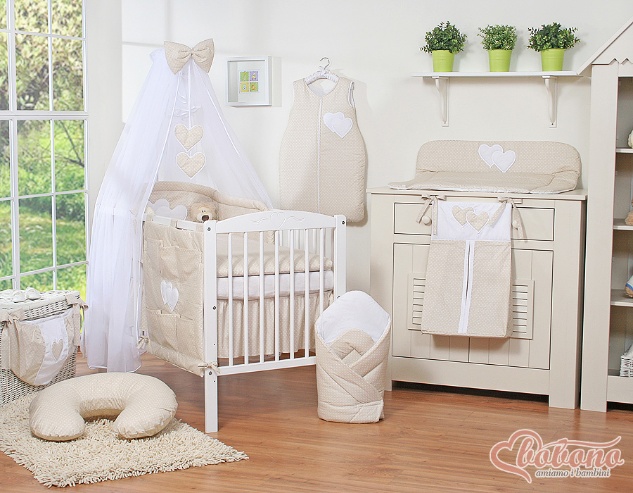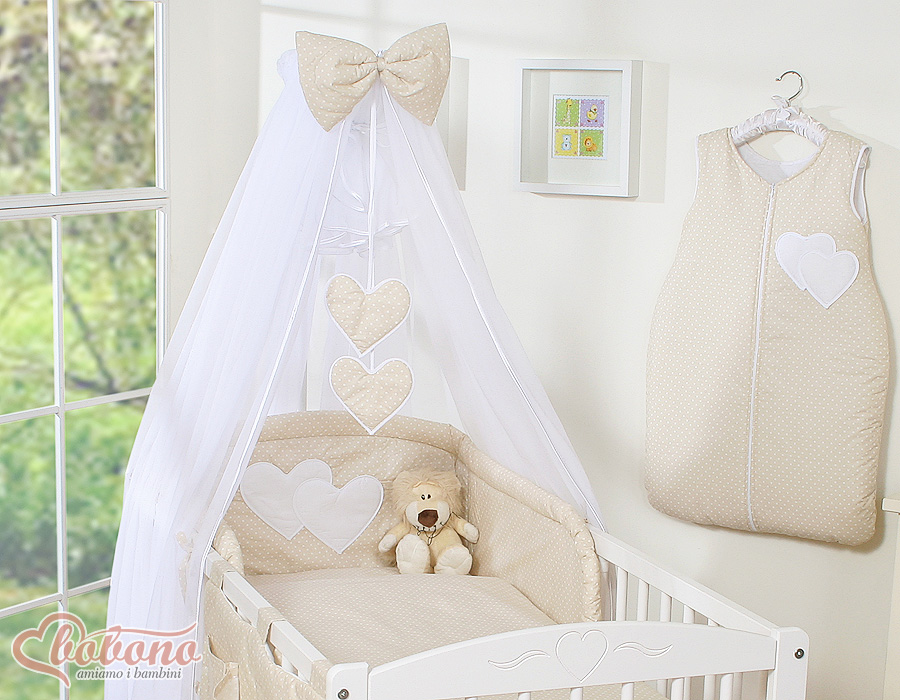 Kleinbaby.nl » Beddengoed voor Ledikant » Beddengoed Set Collectie Harten » 120cm ledikant Beddengoed Set » Beddengoed 11 st met Klamboe - Harten » Beddengoedset voor Ledikant 11 st met Klamboe - Harten Beige Polkaprikker