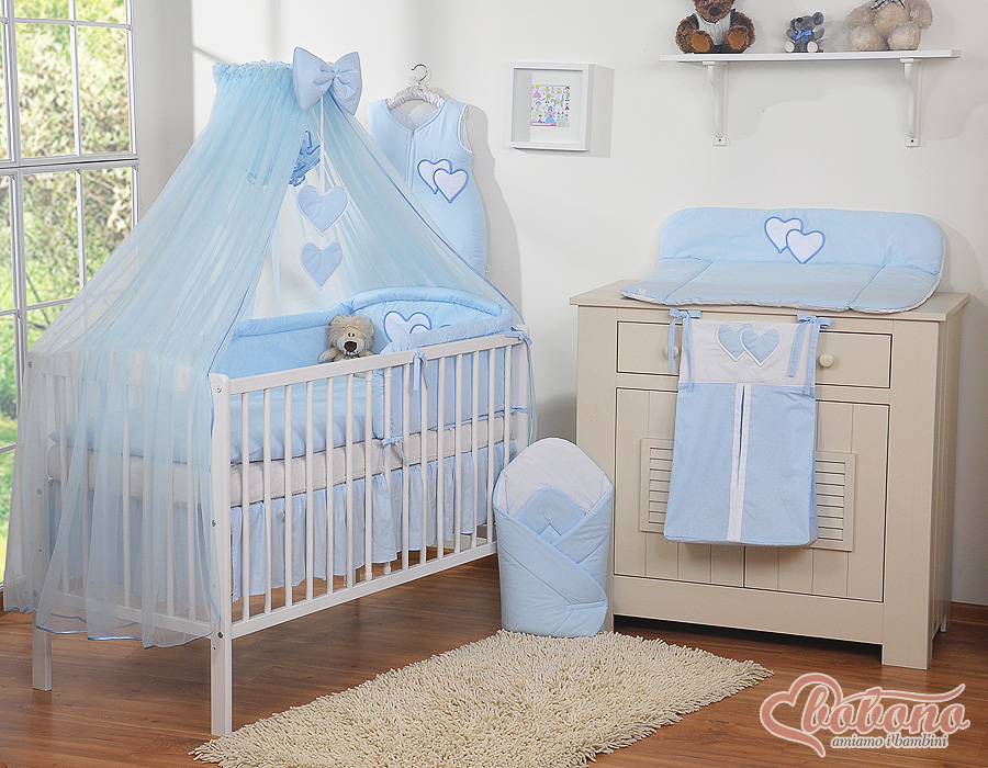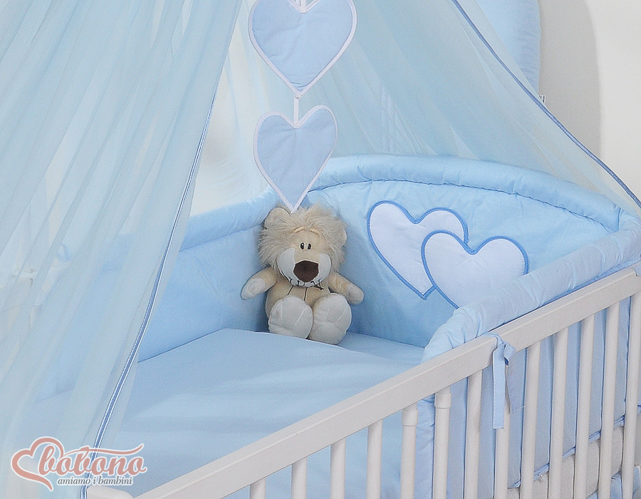 Kleinbaby.nl » Beddengoed voor Ledikant » Beddengoed Set Collectie Harten » 120cm ledikant Beddengoed Set » Beddengoed 11 st met Klamboe - Harten » Beddengoedset voor Ledikant 11 st met Klamboe - Harten Blauw