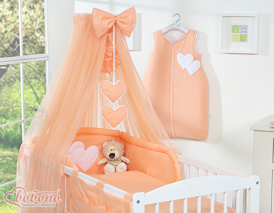 Kleinbaby.nl » Beddengoed voor Ledikant » Beddengoed Set Collectie Harten » 120cm ledikant Beddengoed Set » Beddengoed 11 st met Klamboe - Harten » Beddengoedset voor Ledikant 11 st met Klamboe - Harten Perzik