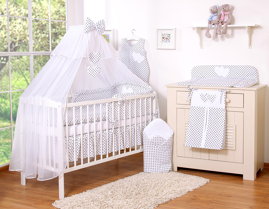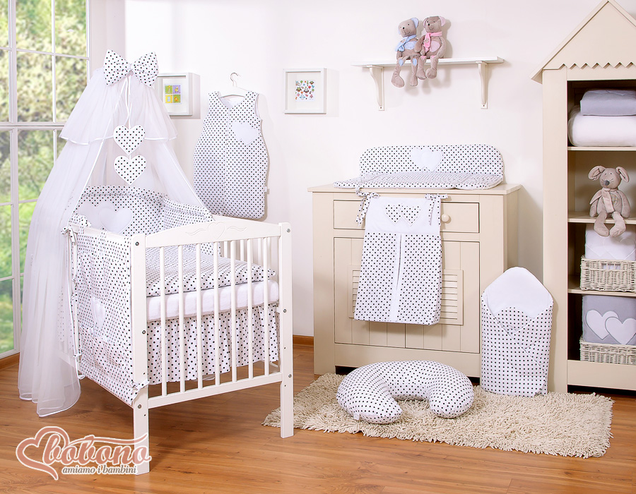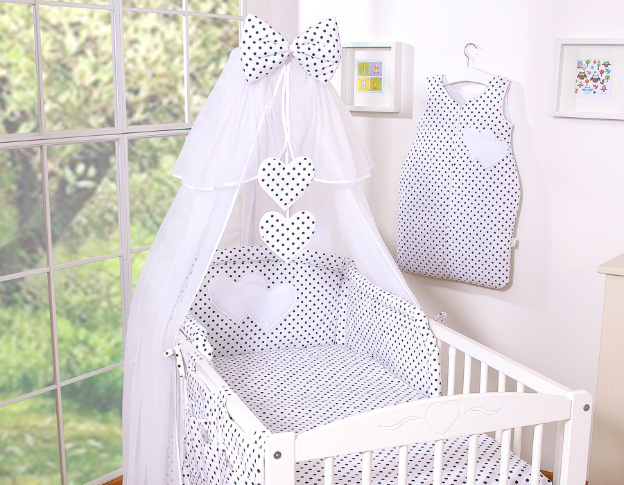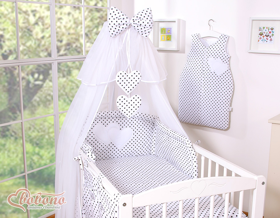 Kleinbaby.nl » Beddengoed voor Ledikant » Beddengoed Set Collectie Harten » 120cm ledikant Beddengoed Set » Beddengoed 11 st met Klamboe - Harten » Beddengoedset voor Ledikant 11 st met Klamboe - Harten Zwart Polkaprikker