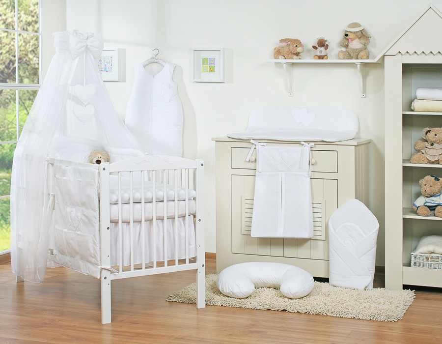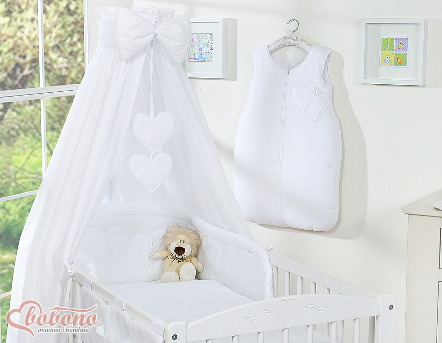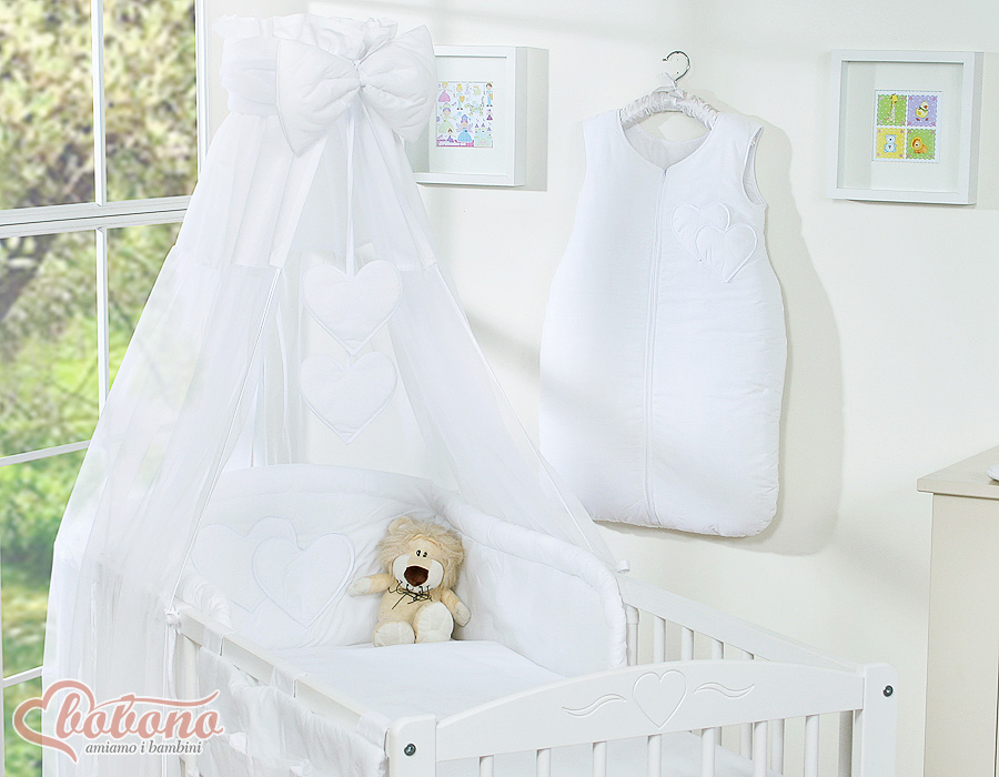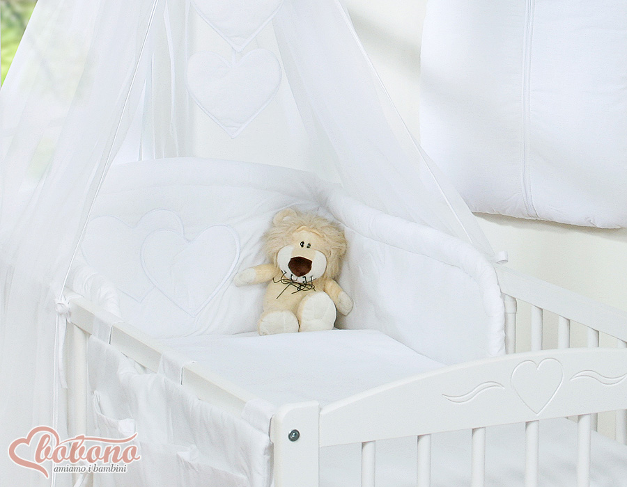 Kleinbaby.nl » Beddengoed voor Ledikant » Beddengoed Set Collectie Harten » 120cm ledikant Beddengoed Set » Beddengoed 7 st met Hemeltje » Beddengoedset voor Ledikant 7 st met Hemeltje - Harten Wit