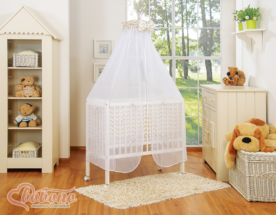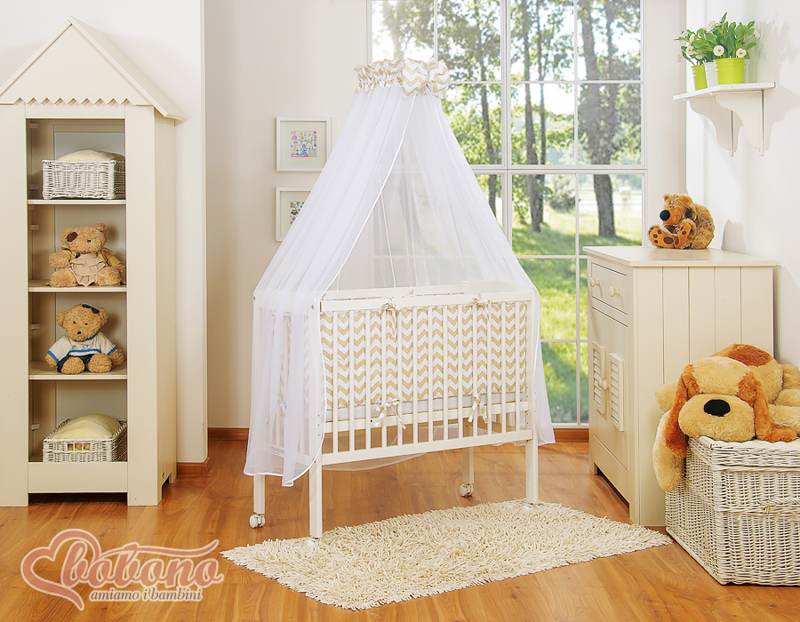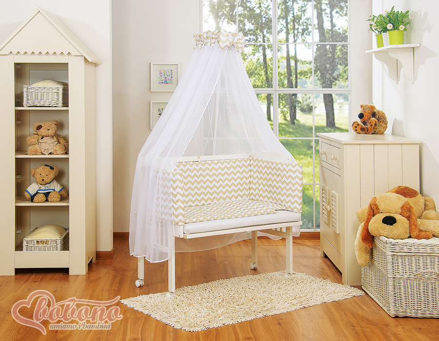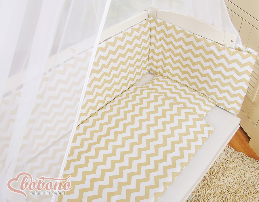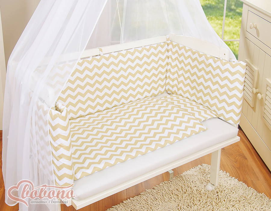 Kleinbaby.nl » Ledikanten 120x60 cm » Bijzetbed » bedkant wieg met Beddengoed » Bedkant Wieg met Matras en beddengoed - Beige Zigzag