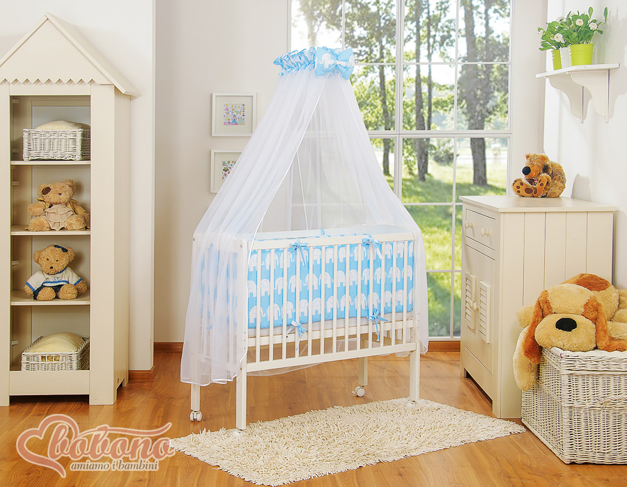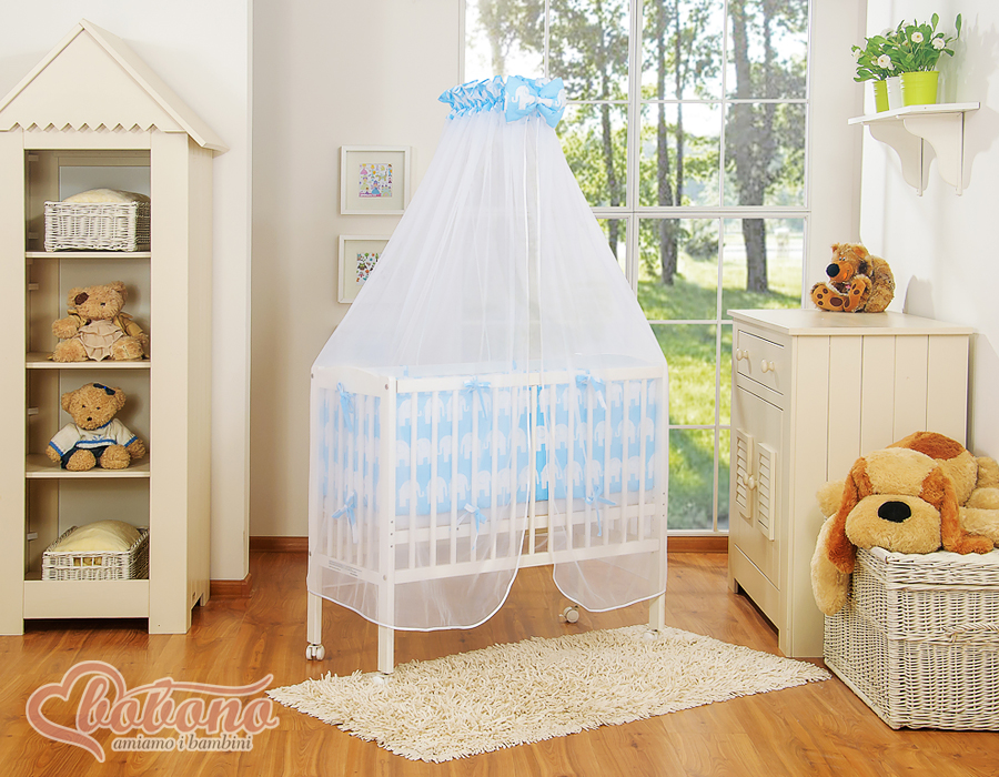 → Textiel (hoofdkussen en hoes, kussensloop en dekbedovertrek, bumper, hemeltje met decoratie, stang voor hemeltje)