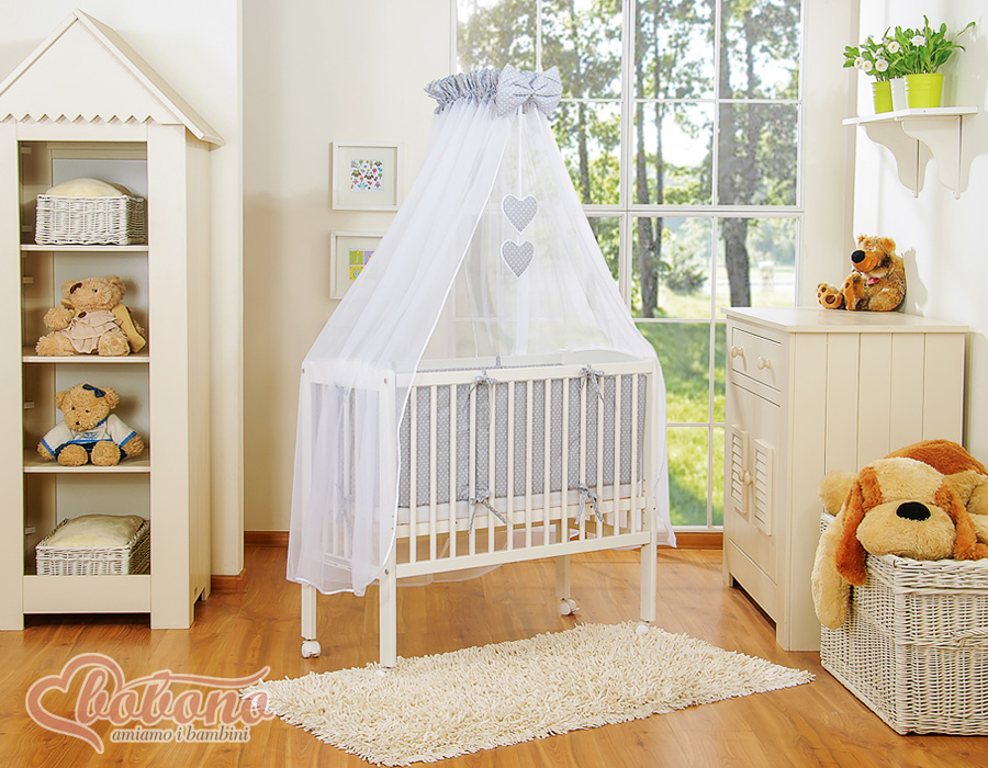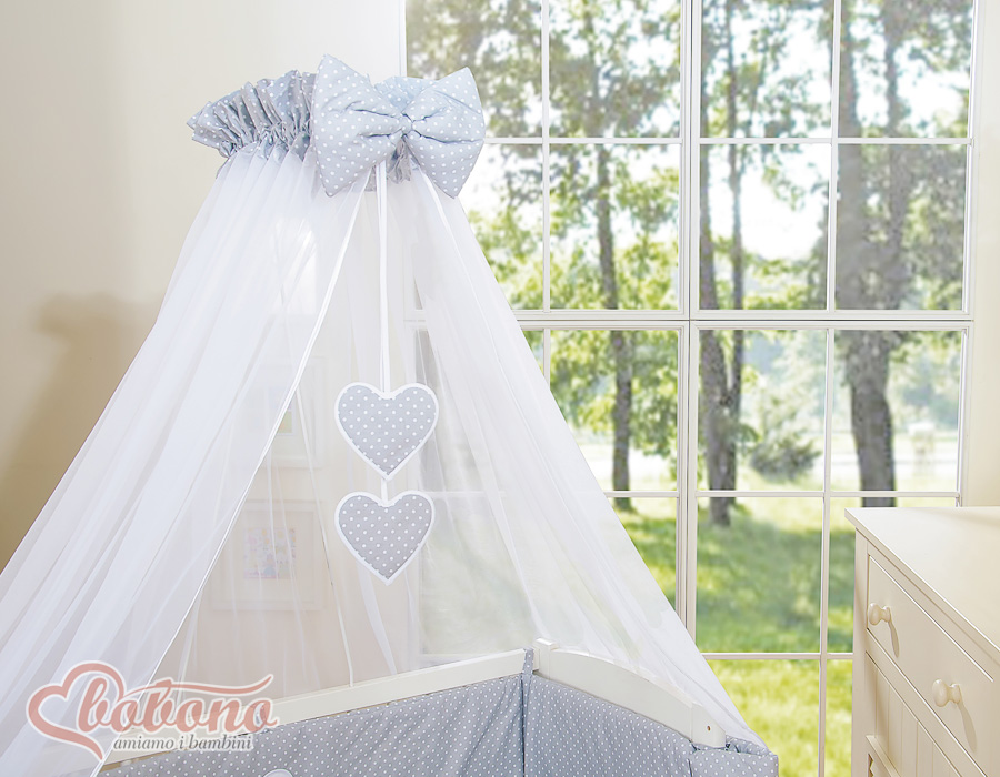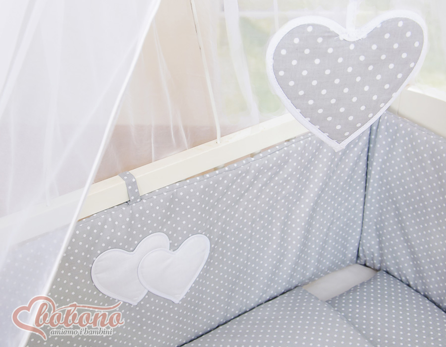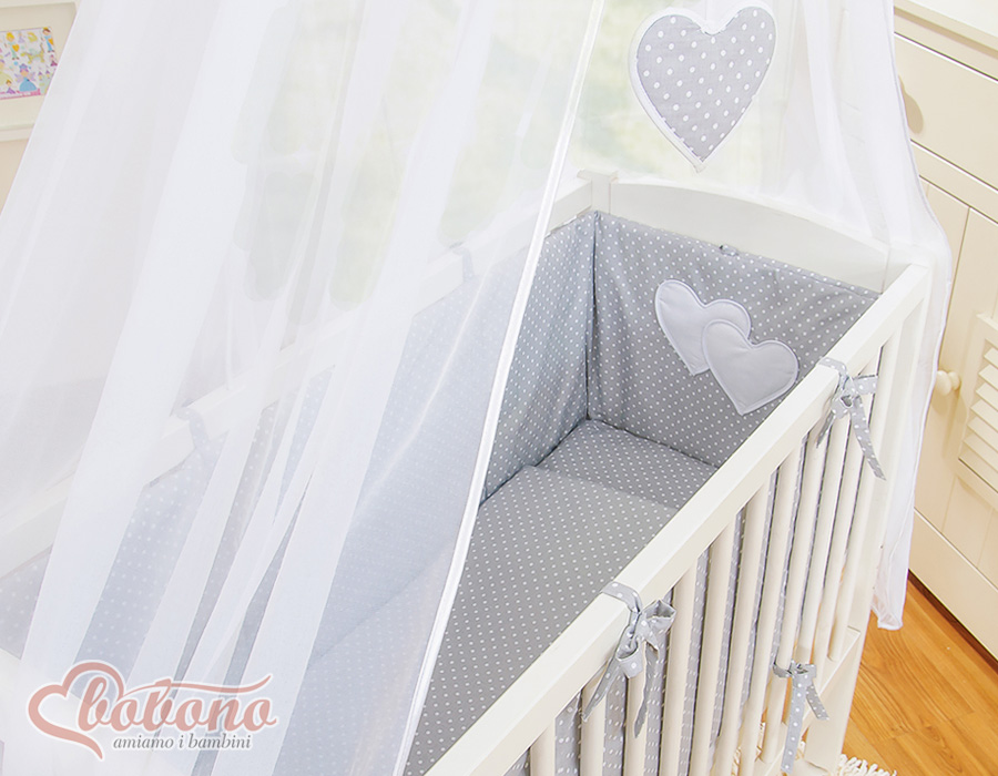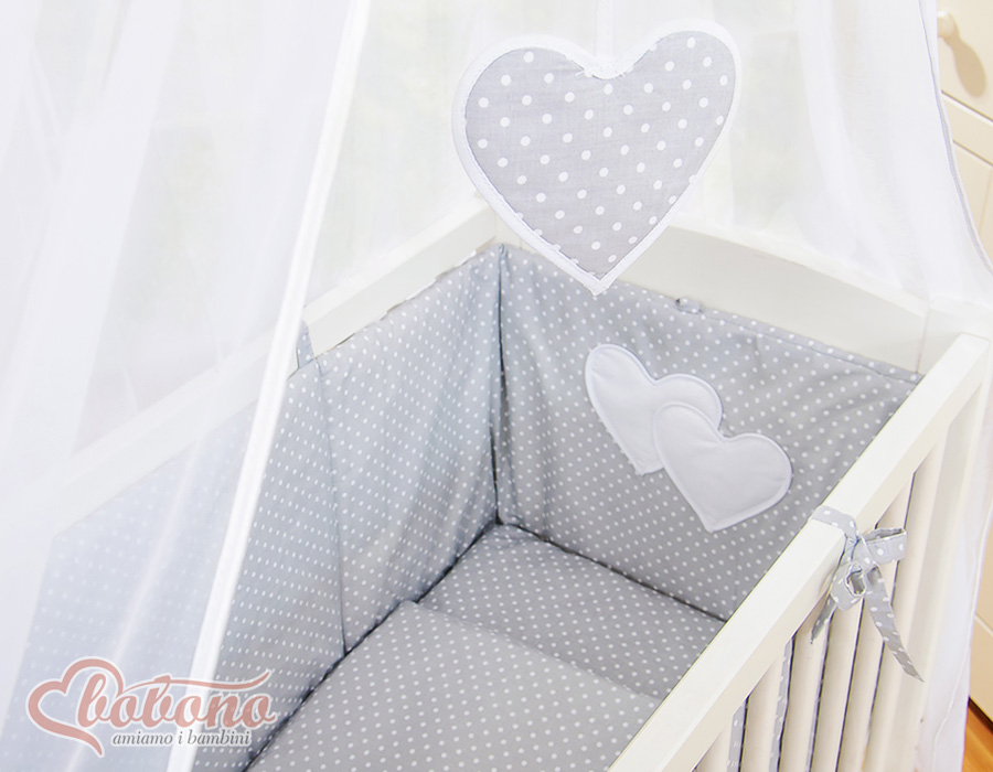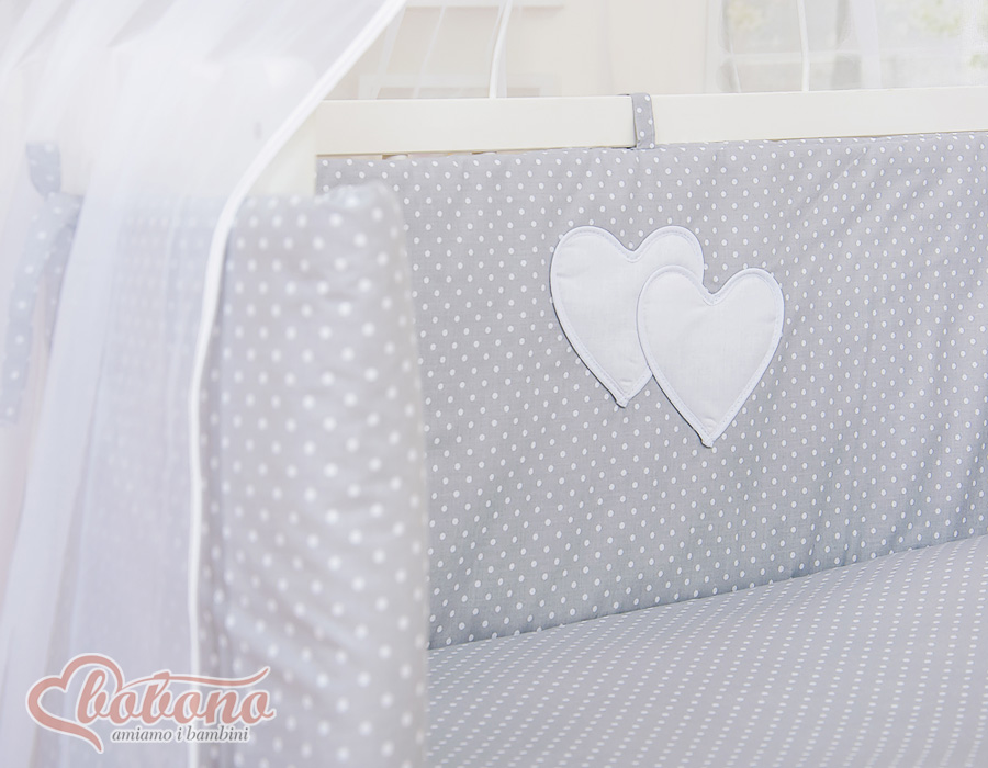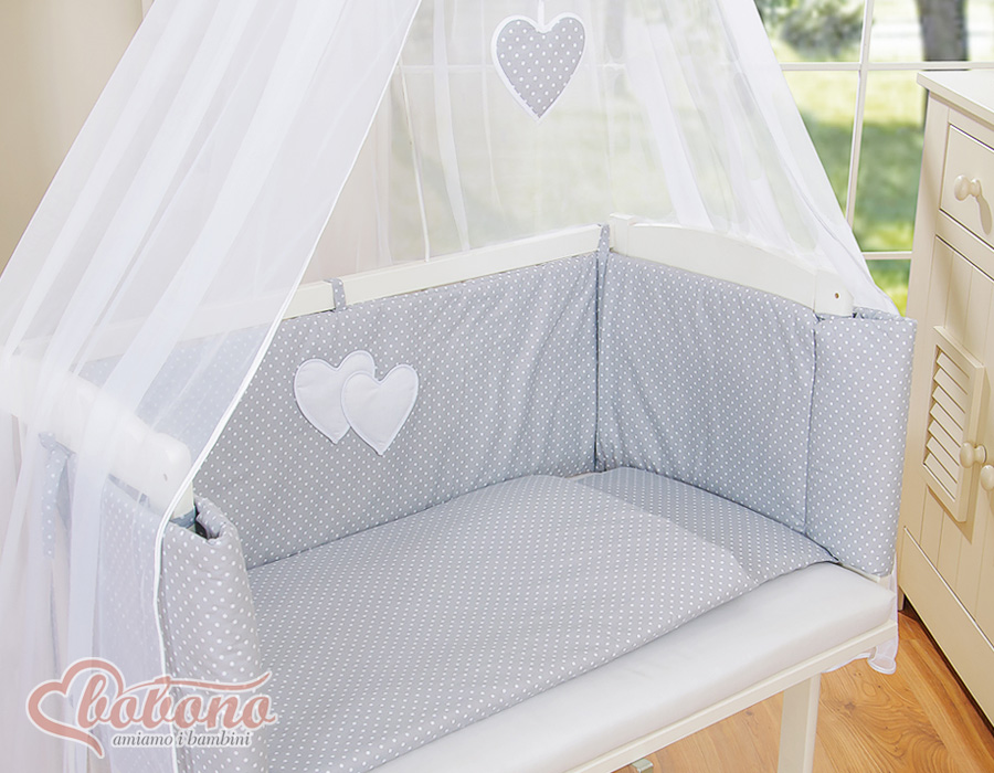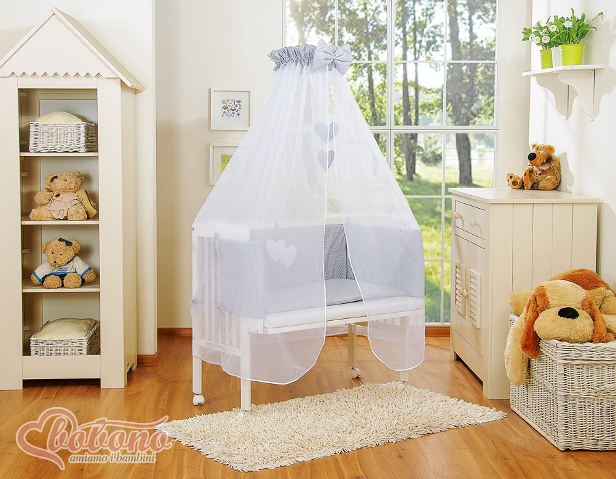 Kleinbaby.nl » Ledikanten 120x60 cm » Bijzetbed » bedkant wieg met Beddengoed » Bedkant Wieg met Matras en beddengoed - Grijs Polkaprikker