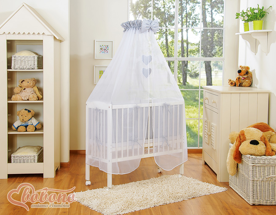 → Textiel (hoofdkussen en hoes, kussensloop en dekbedovertrek, bumper, hemeltje met decoratie, stang voor hemeltje)