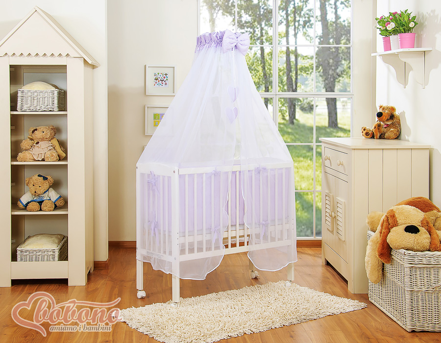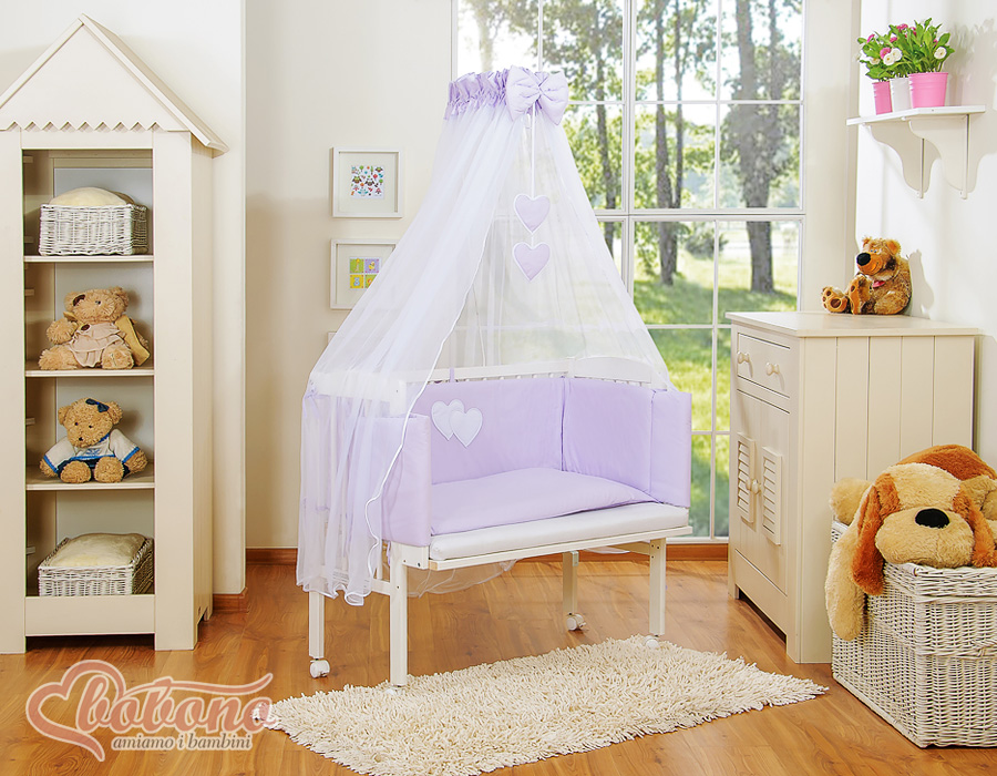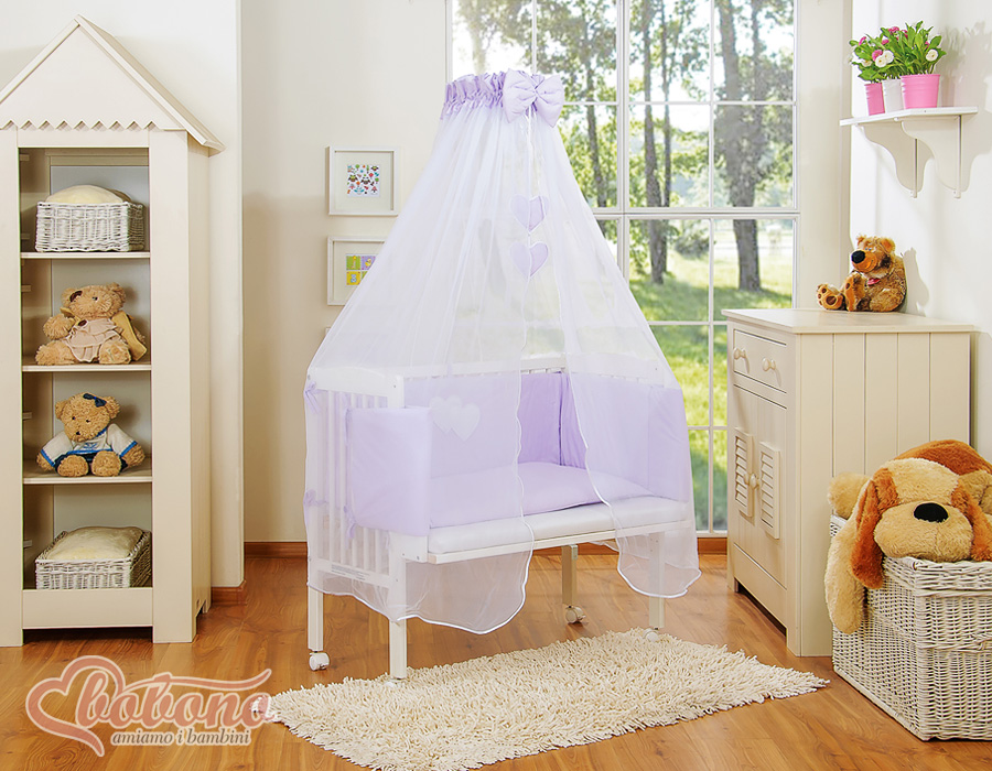 Kleinbaby.nl » Ledikanten 120x60 cm » Bijzetbed » bedkant wieg met Beddengoed » Bedkant Wieg met Matras en beddengoed - Purper