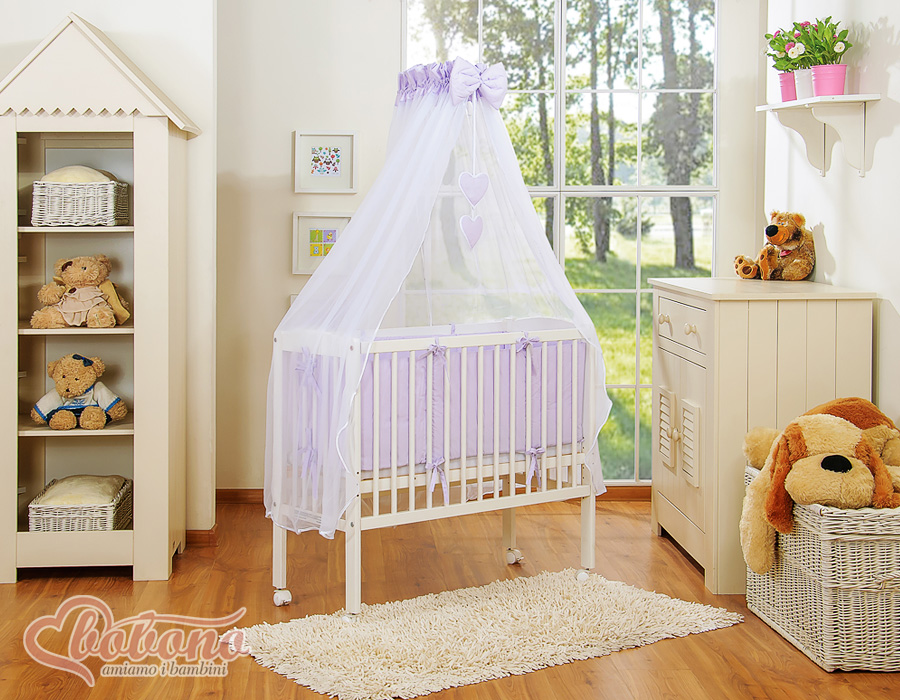 → Textiel (hoofdkussen en hoes, kussensloop en dekbedovertrek, bumper, hemeltje met decoratie, stang voor hemeltje)