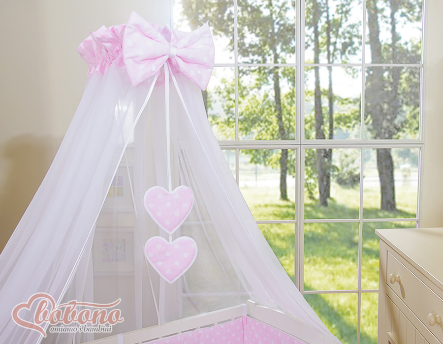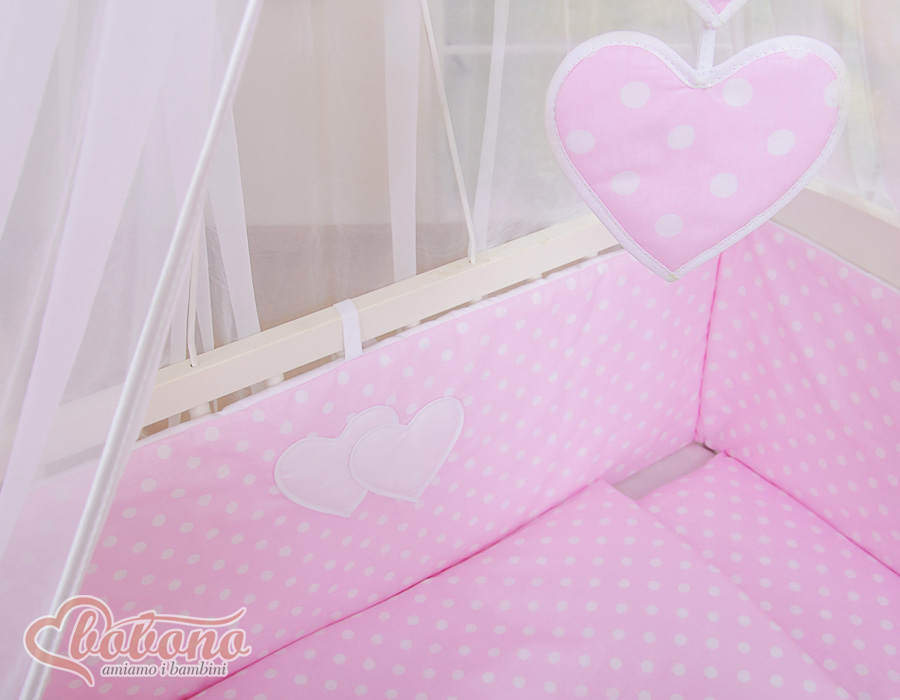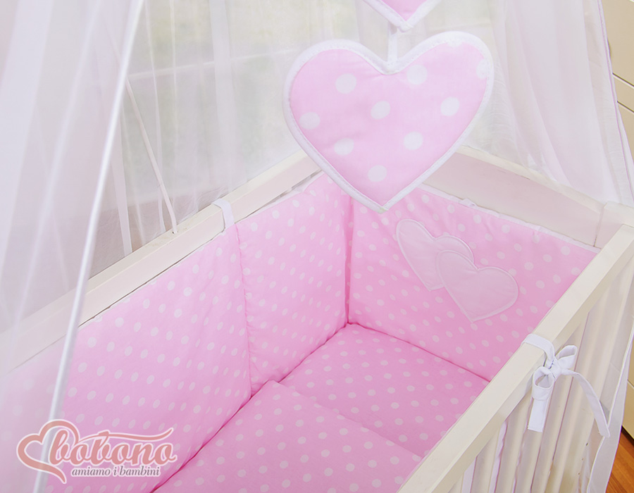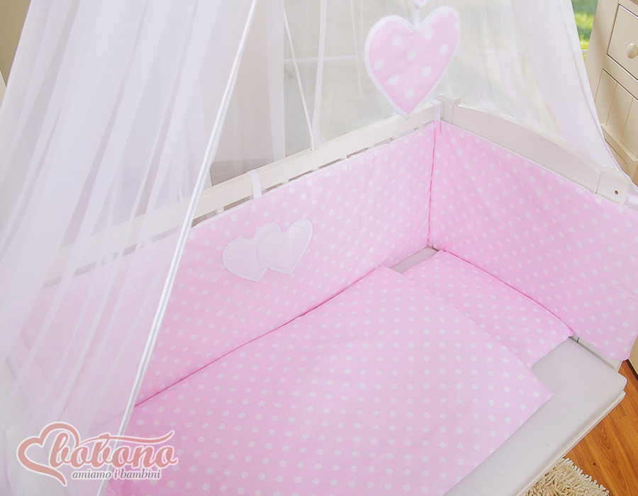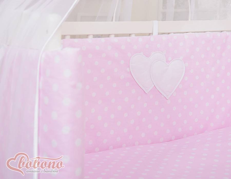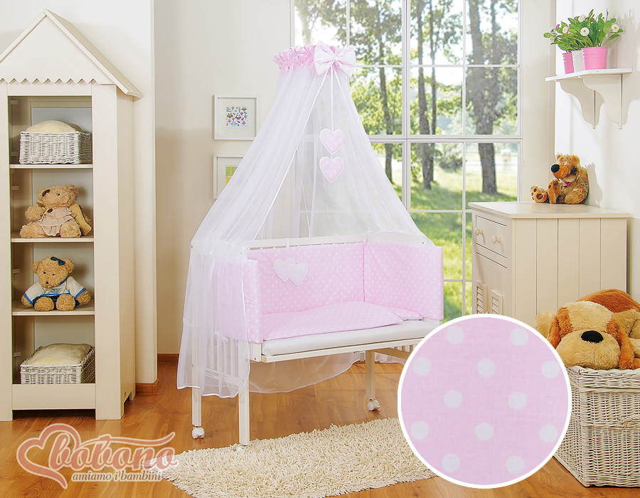 Kleinbaby.nl » Ledikanten 120x60 cm » Bijzetbed » bedkant wieg met Beddengoed » Bedkant Wieg met Matras en beddengoed - Roze Polkaprikker