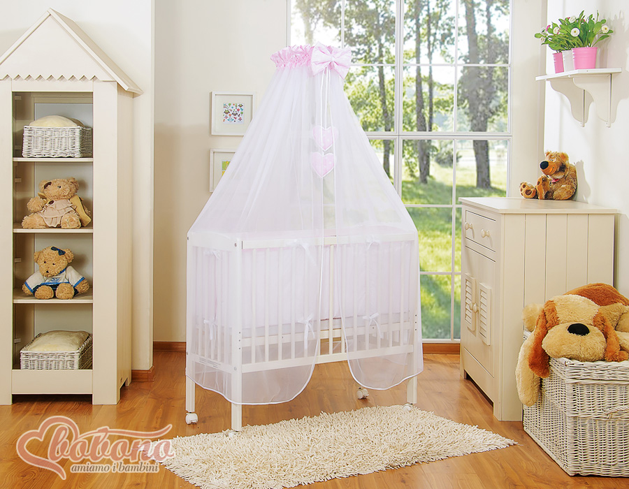 → Textiel (hoofdkussen en hoes, kussensloop en dekbedovertrek, bumper, hemeltje met decoratie, stang voor hemeltje)