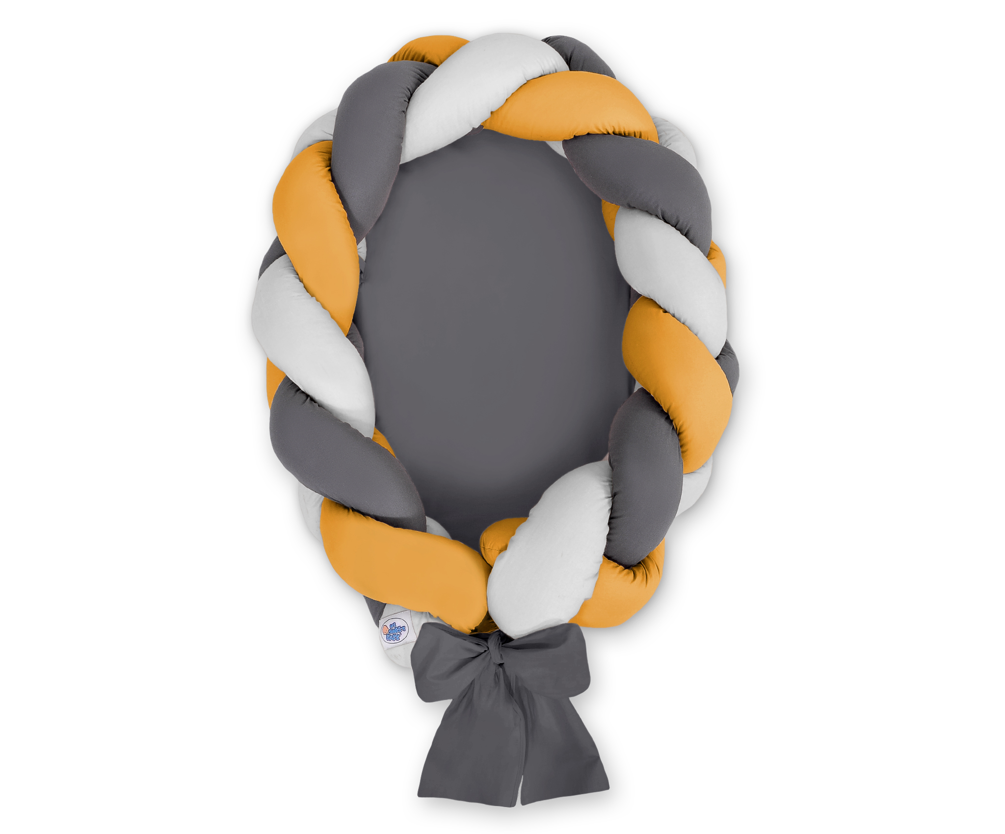 Bedomrander Babynest Gevlochten 2 in 1 Grijs Antraciet Honing MosterdBedomrander Babynest Gevlochten 2 in 1 Grijs Antraciet Honing Mosterd