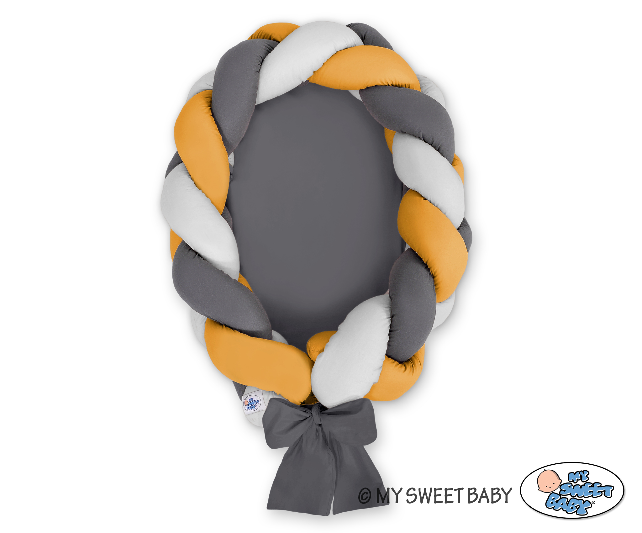 Kleinbaby.nl » Gevlochten Collectie » Gevlochten Babynest 2 in 1 » Bedomrander Babynest Gevlochten 2 in 1 Grijs Antraciet Honing Mosterd