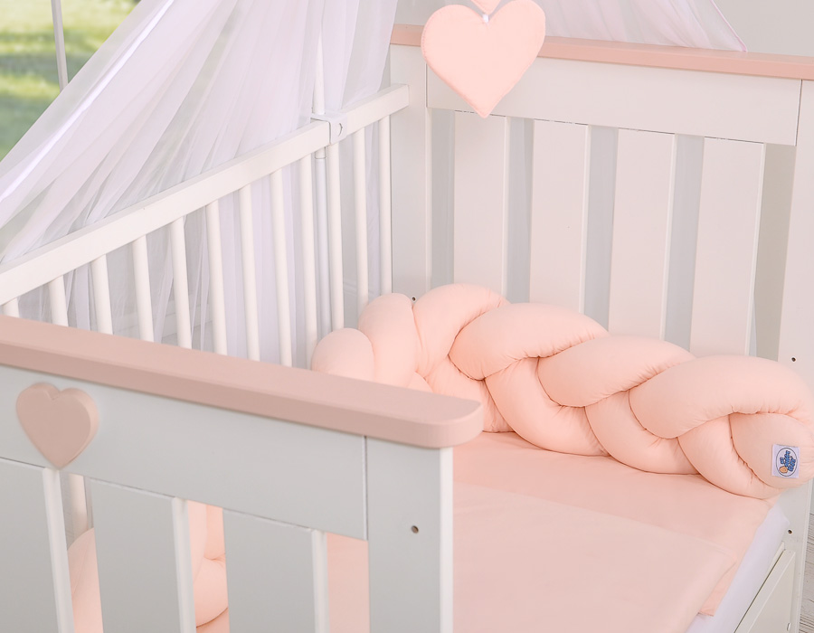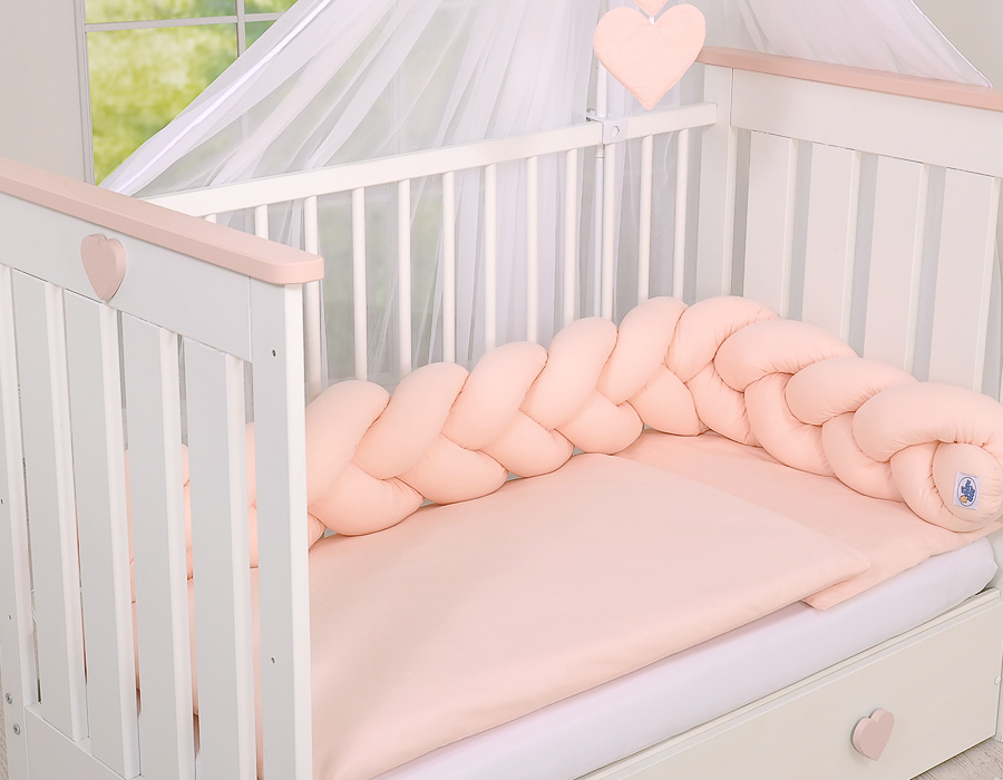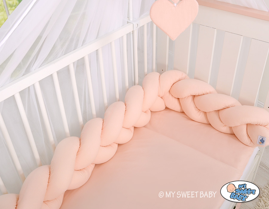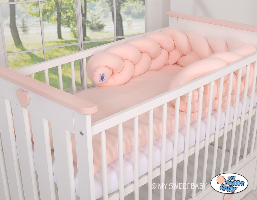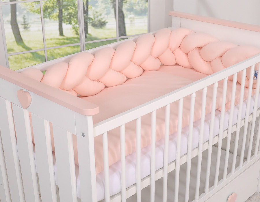Kleinbaby.nl » Gevlochten Collectie » Gevlochten Bedomrander » Bedomrander Gevlochten voor Ledikant 180 cm Poederroze