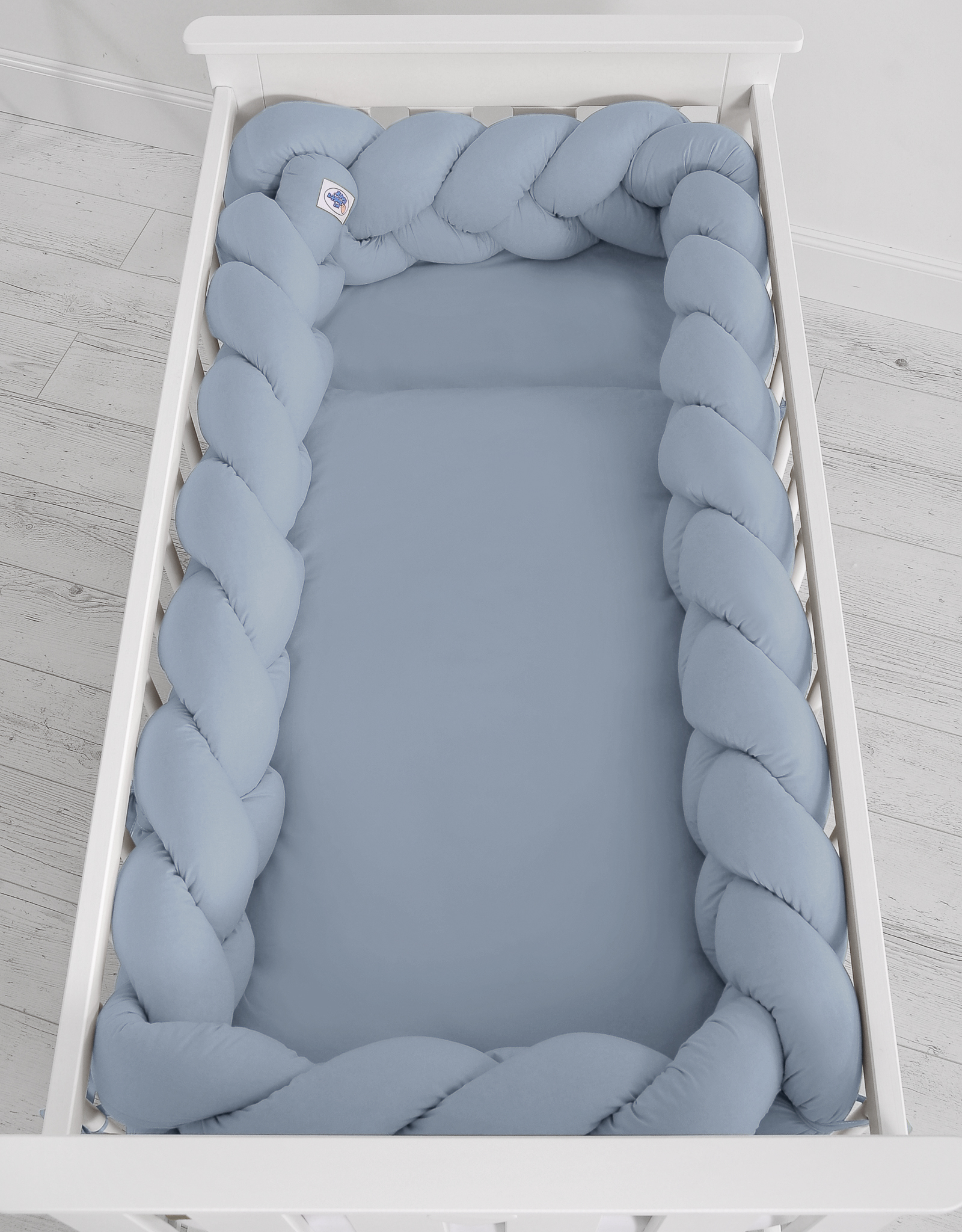 Kleinbaby.nl » Gevlochten Collectie » Gevlochten Bedbumper » Bedomrander Ledikant Gevlochten 360cm Pastelblauw