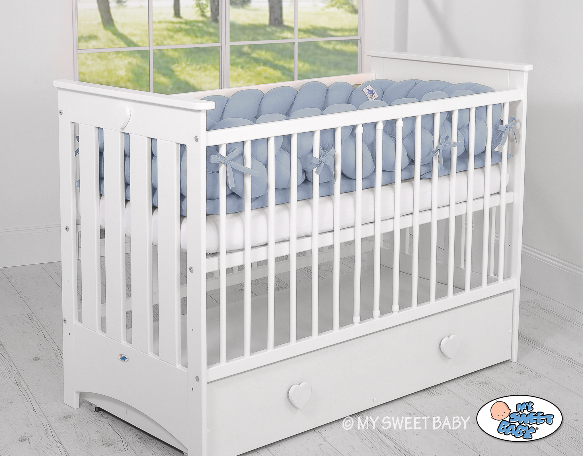 Prachtige, zachte, gevlochten bedbumper voor ledikant van 100% katoen. Kan aan de spijlen worden bevestigd.