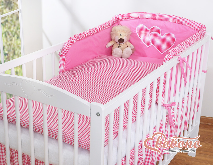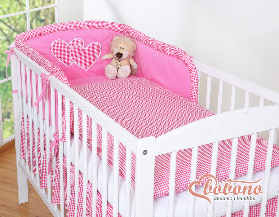 Kleinbaby.nl » Beddengoed voor Ledikant » Beddengoed Set Collectie Harten » 120cm ledikant Beddengoed Set » Universele Bedbumper - Harten » Bedomrander voor ledikant - Harten Roze Geruit