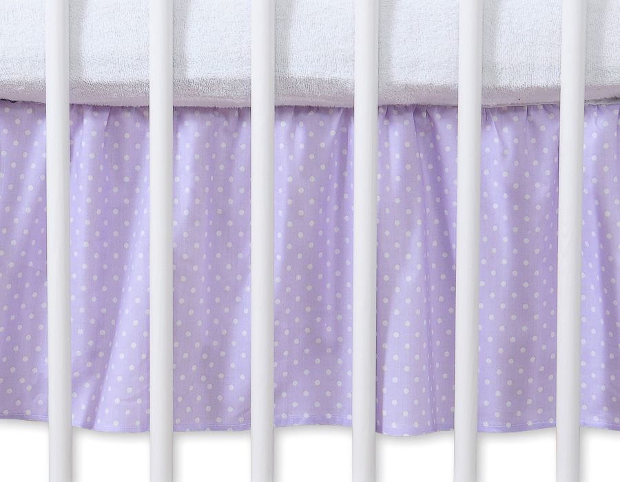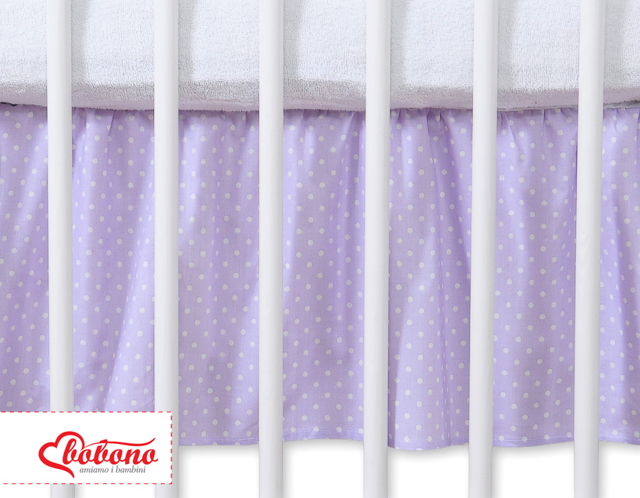Kleinbaby.nl » Beddengoed voor Ledikant » Beddengoed Set Collectie Harten » Stofhoes - Maskerende Ruche voor Ledikant 140 cm » Bedrok Maskerende Ruche voor Babybed 140x70 cm - Harten Purper Polkaprikker