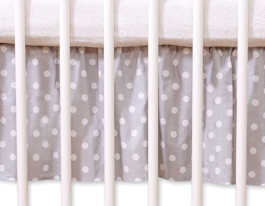 Kleinbaby.nl » Beddengoed voor Ledikant » Beddengoed Set Collectie Harten » Bedrok voor Ledikant 120 cm » Bedrok voor Kinderbed 120x60 cm - Harten Grijs Polkaprikker