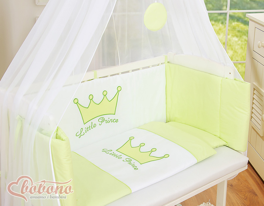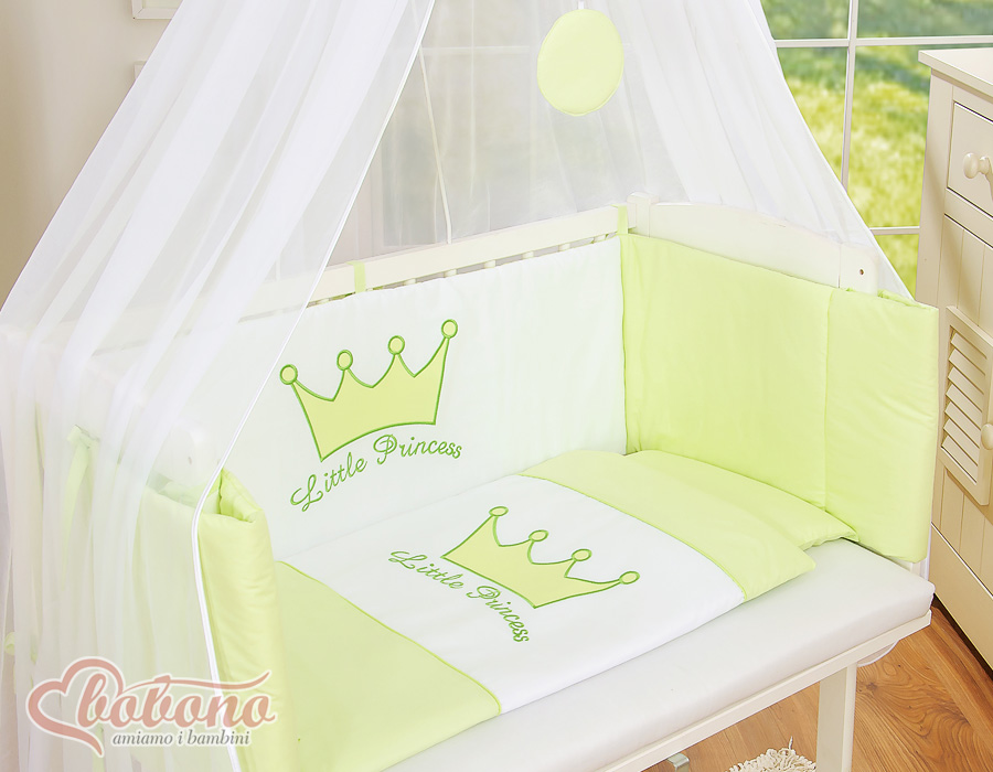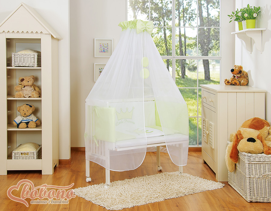 Kleinbaby.nl » Ledikanten 120x60 cm » Bijzetbed » bedkant wieg met Beddengoed » Bijzetbed baby met Matras en beddengoed - Groen Little Prince Princess