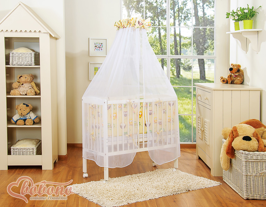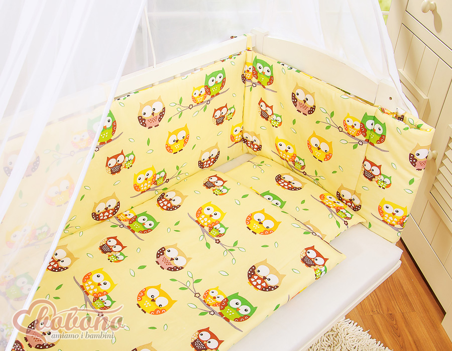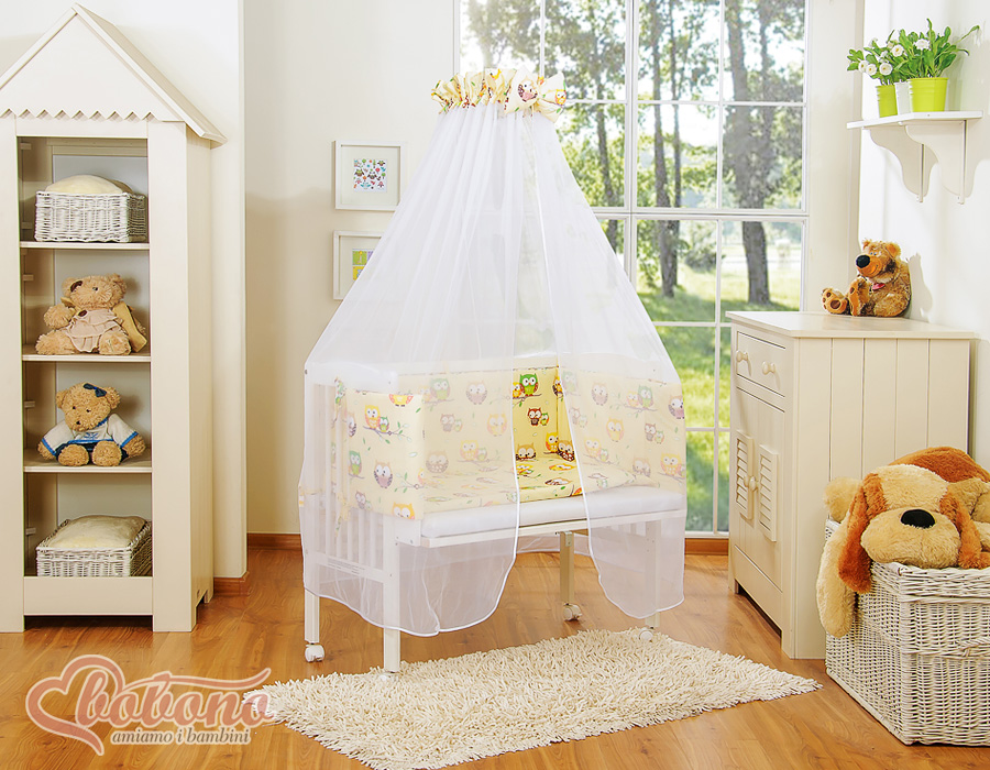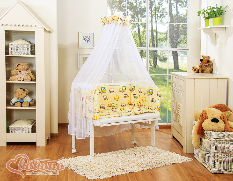 Kleinbaby.nl » Ledikanten 120x60 cm » Bijzetbed » bedkant wieg met Beddengoed » Bijzetbed baby met Matras en beddengoed - Ivoor Gelukkige Uilen