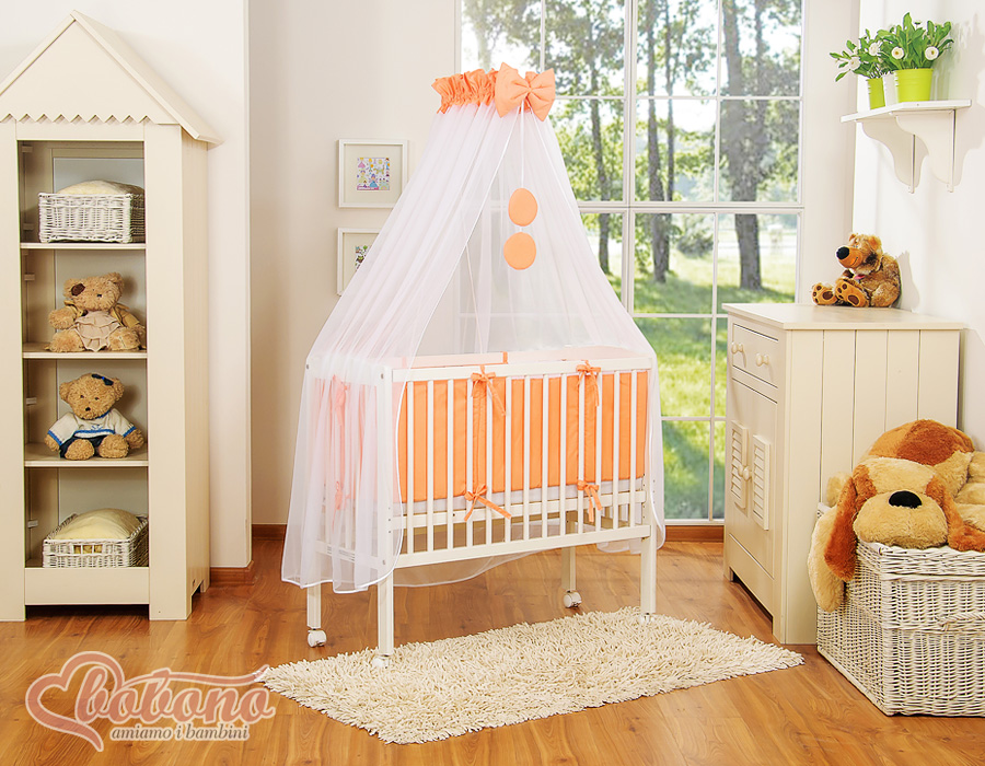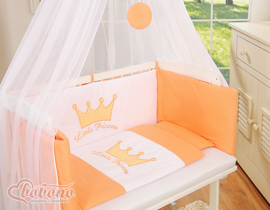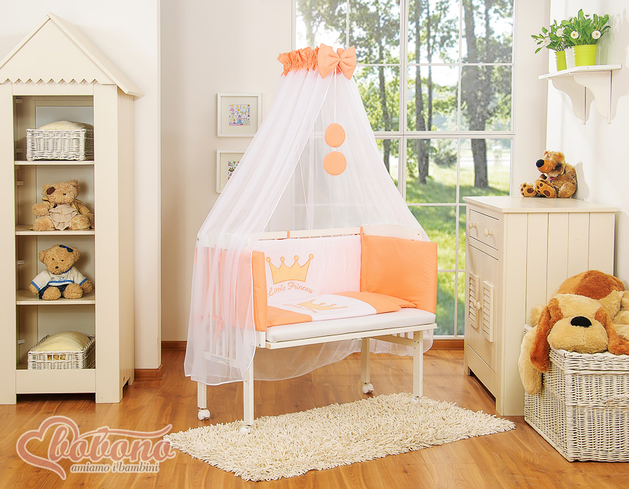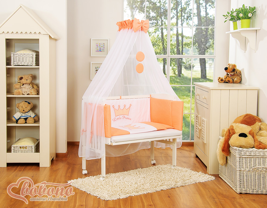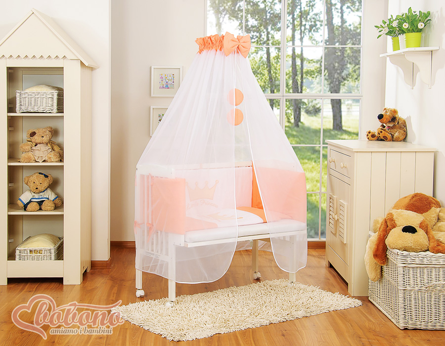 Kleinbaby.nl » Ledikanten 120x60 cm » Bijzetbed » bedkant wieg met Beddengoed » Bijzetbed baby met Matras en beddengoed - Perzik Little Prince Princess