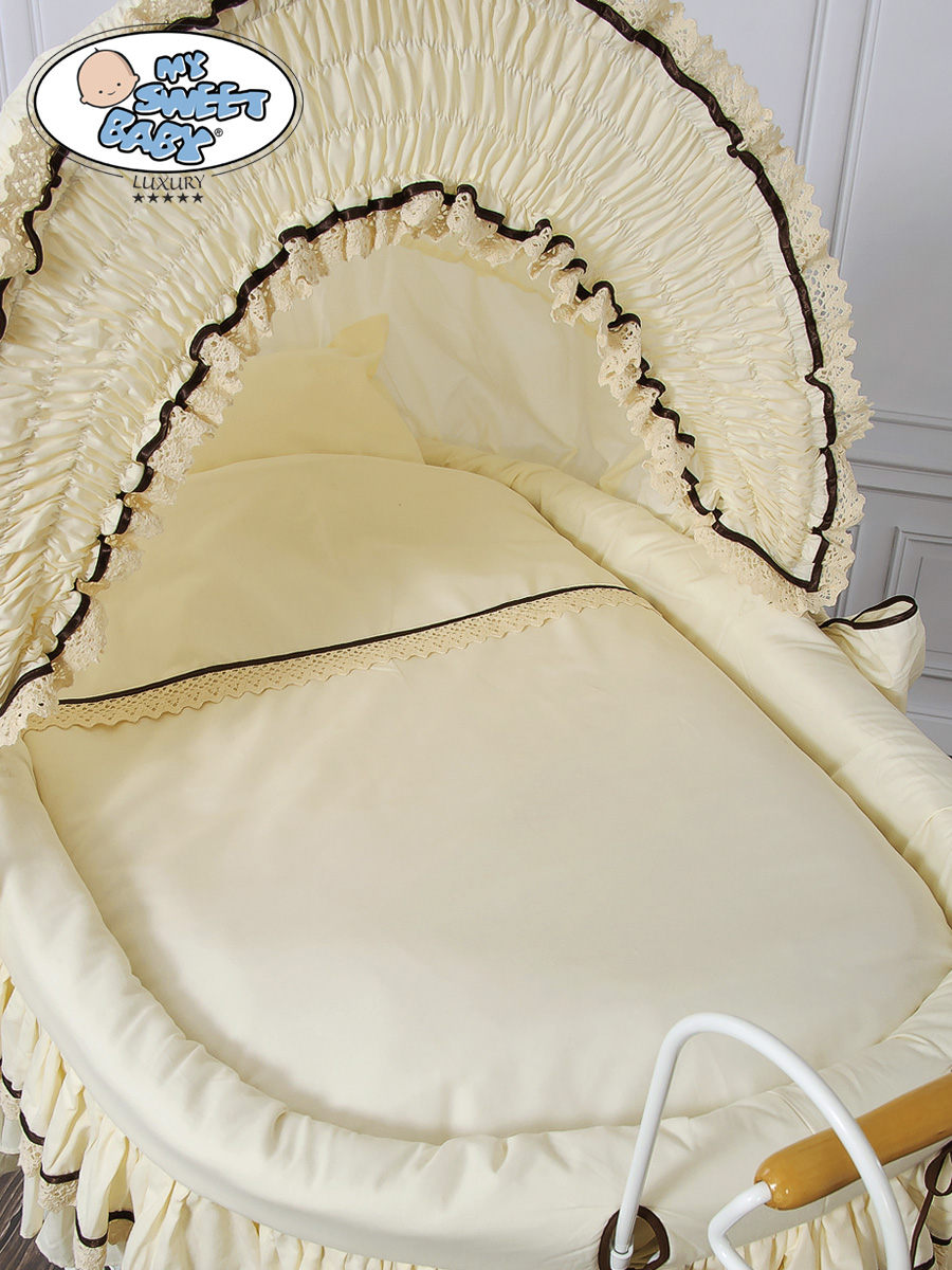 → overtrek met een ingenaaide, zachte vulling, kap en hoes, hoofdkussen en hoes (vulling: buitenstof in 100% katoen, vulling in 100% polyester), dekbedovertrek en bedsprei. Allemaal van 100% katoen.