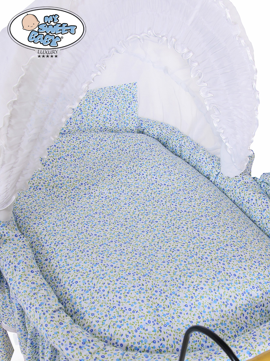 Kleinbaby.nl » Babywiege » Brocante babywiegje » Retro Wiegen voor Baby » Brocante Babywiegje Rotan Wit Blauw Jasmijn