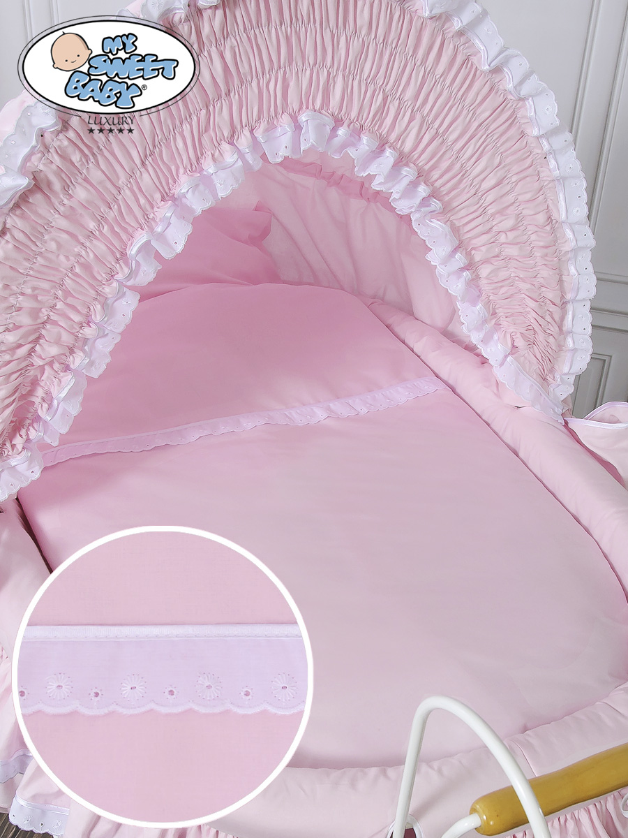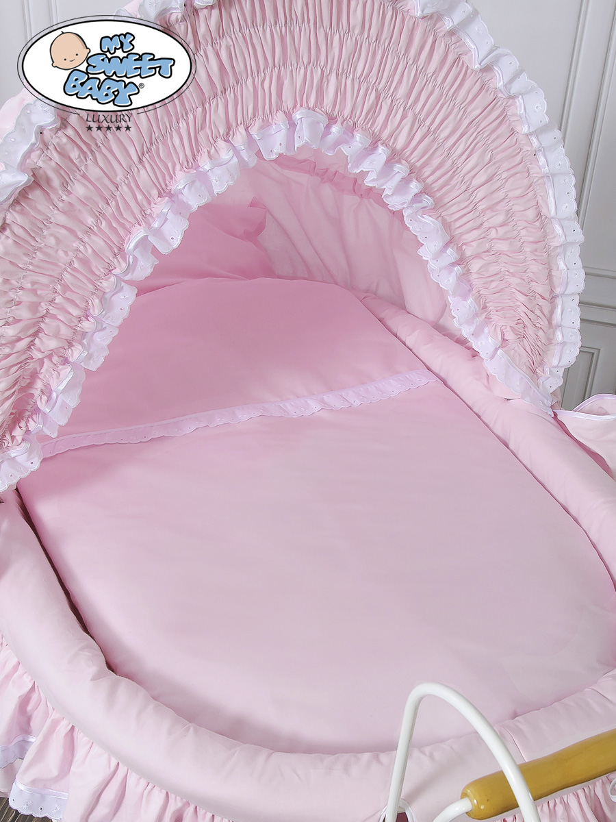 → overtrek met een ingenaaide, zachte vulling, kap en hoes, hoofdkussen en hoes (vulling: buitenstof in 100% katoen, vulling in 100% polyester), dekbedovertrek en bedsprei. Allemaal van 100% katoen.