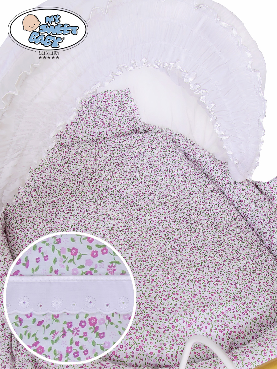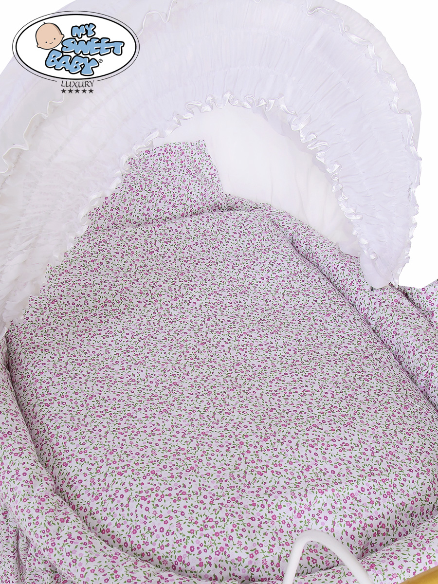 → overtrek met een ingenaaide, zachte vulling, kap en hoes, hoofdkussen en hoes (vulling: buitenstof in 100% katoen, vulling in 100% polyester), dekbedovertrek en bedsprei. Allemaal van 100% katoen.