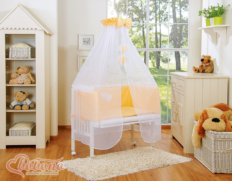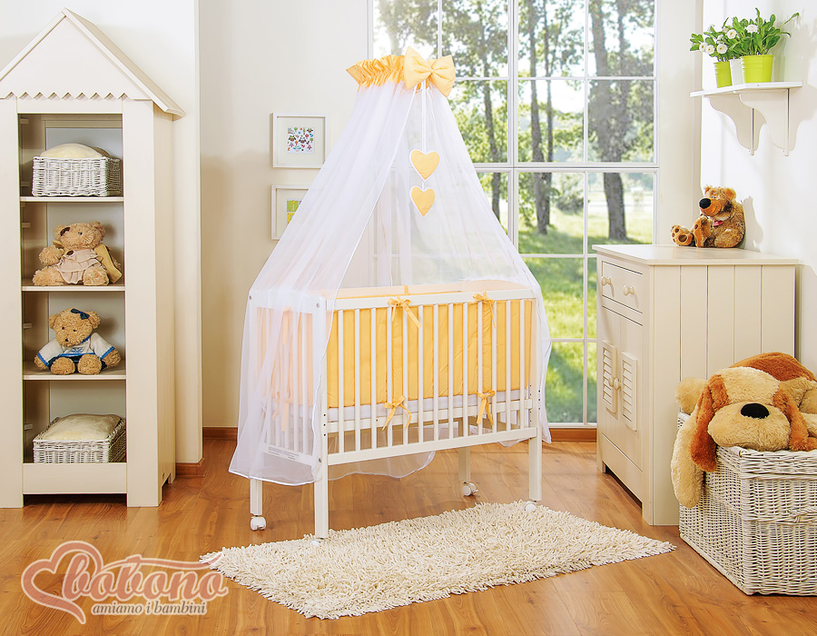→ Textiel (hoofdkussen en hoes, kussensloop en dekbedovertrek, bumper, hemeltje met decoratie, stang voor hemeltje)