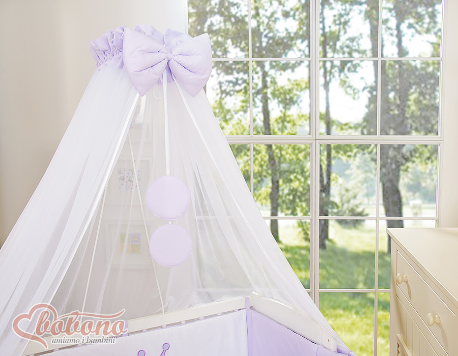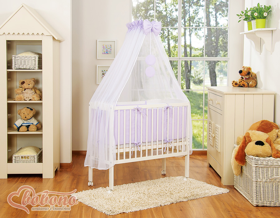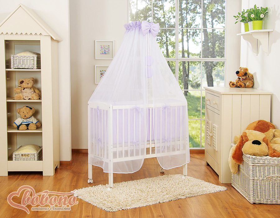 → Textiel (hoofdkussen en hoes, kussensloop en dekbedovertrek, bumper, hemeltje met decoratie, stang voor hemeltje)