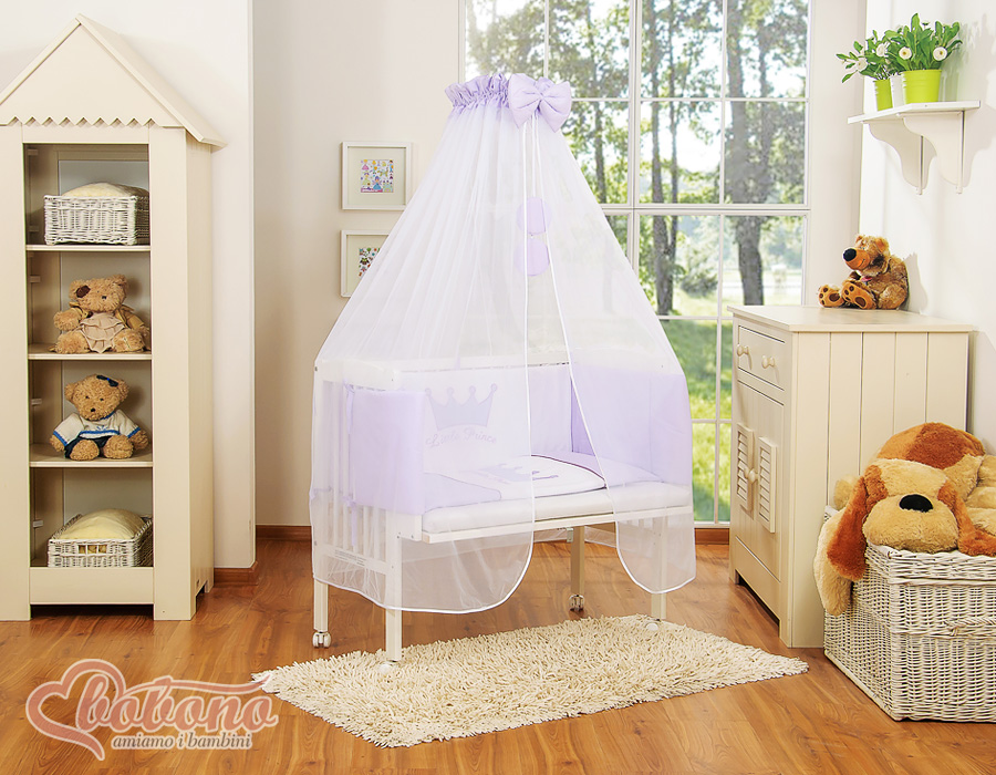 Kleinbaby.nl » Ledikanten 120x60 cm » Bijzetbed » bedkant wieg met Beddengoed » Co-sleeper Kinderbed met Matras en beddengoed - Purper Little Prince Princess