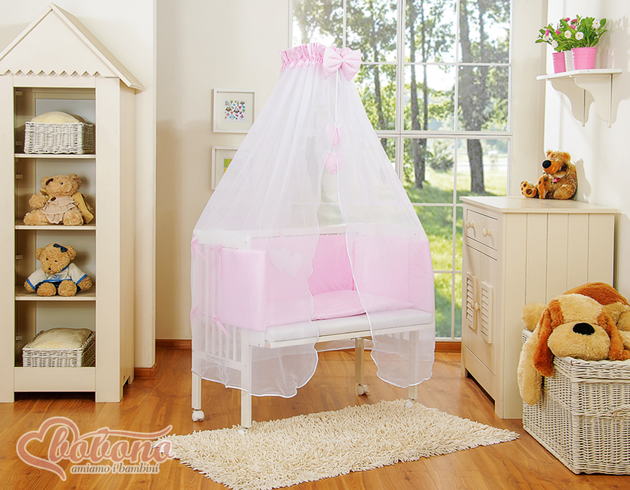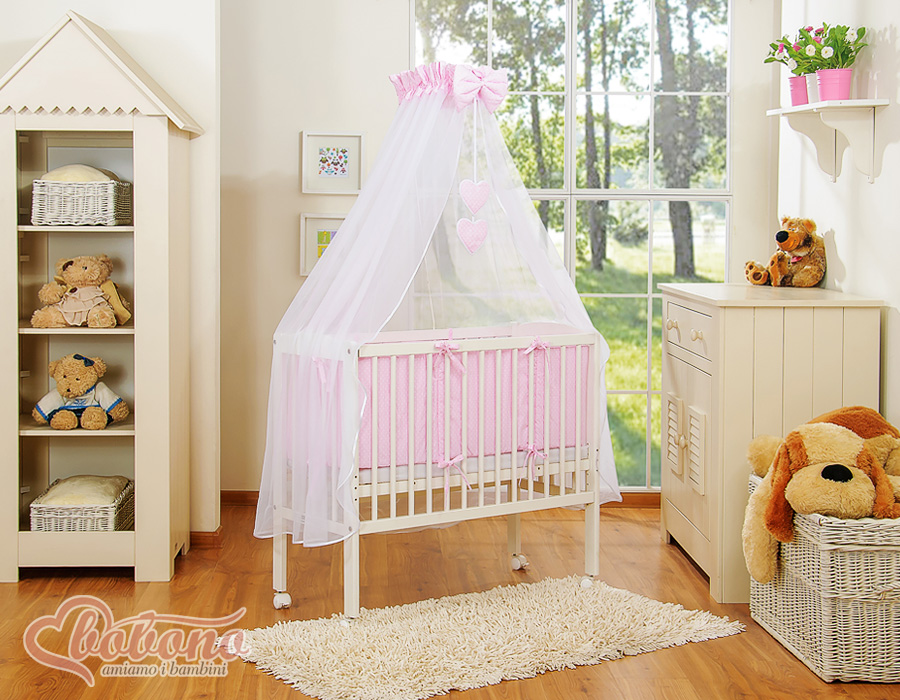 → Textiel (hoofdkussen en hoes, kussensloop en dekbedovertrek, bumper, hemeltje met decoratie, stang voor hemeltje)
