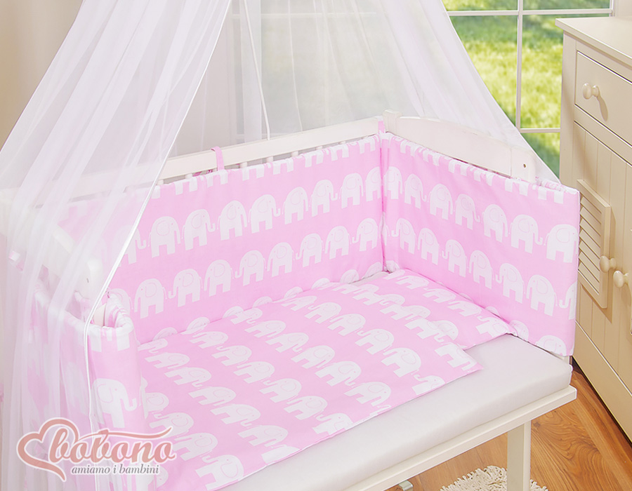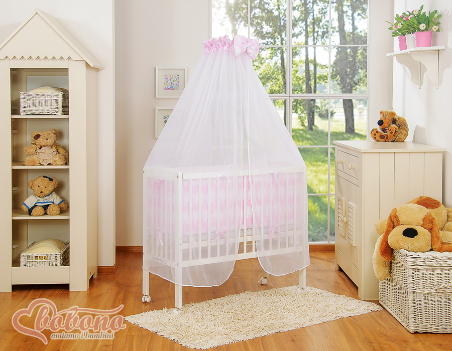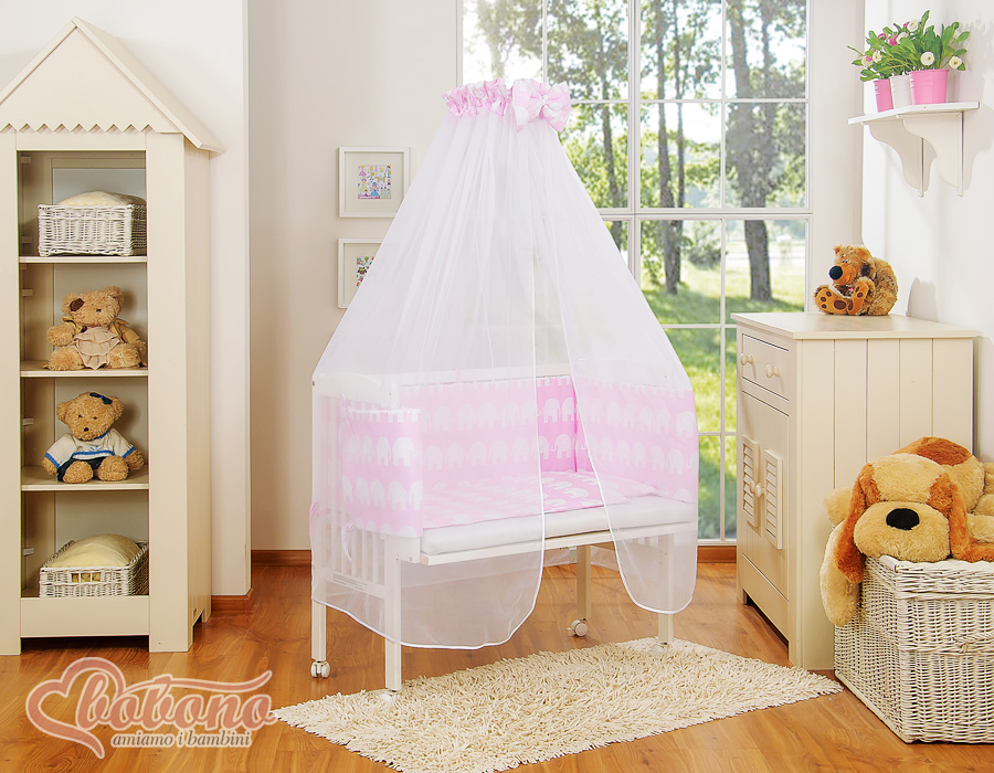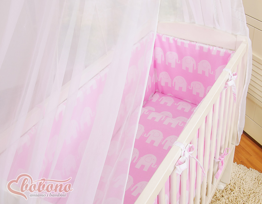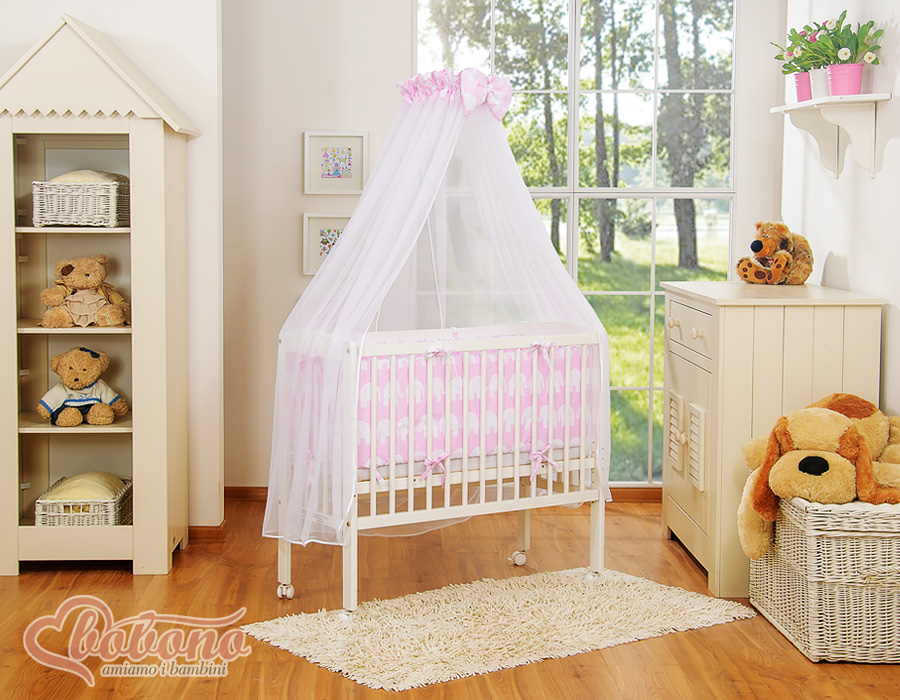 → Textiel (hoofdkussen en hoes, kussensloop en dekbedovertrek, bumper, hemeltje met decoratie, stang voor hemeltje)