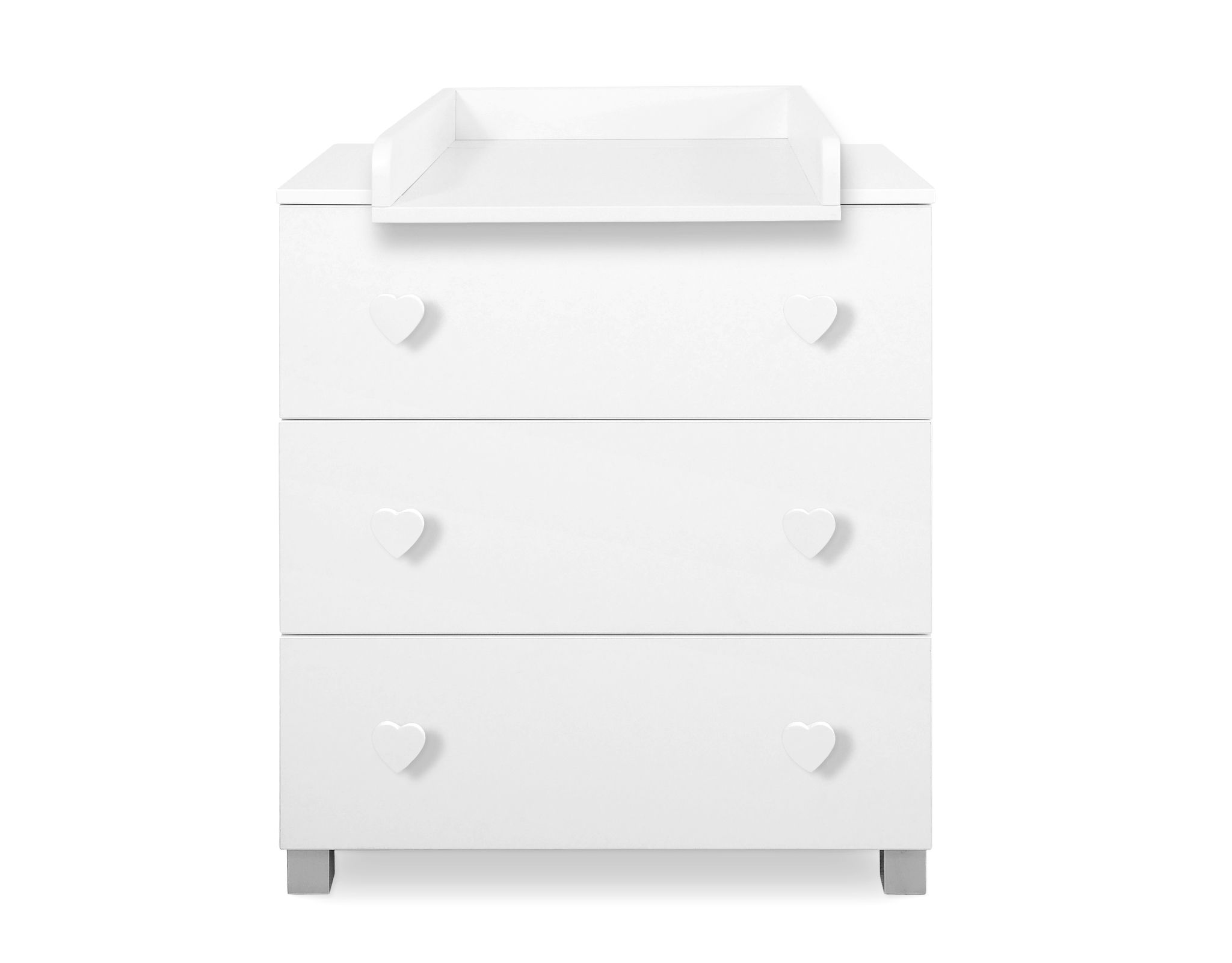 Dit prachtige en praktische ladekast met een afneembaar verschoningsblad maakt het eenvoudig om je baby te verschonen. Zeer praktisch in de eerste maanden na de geboorte en gaat vele jaren mee. De ladekast heeft 3 diepe, ruime laden op rolgeleiders die ervoor zorgen dat de lade volledig uitgeschoven kan worden.