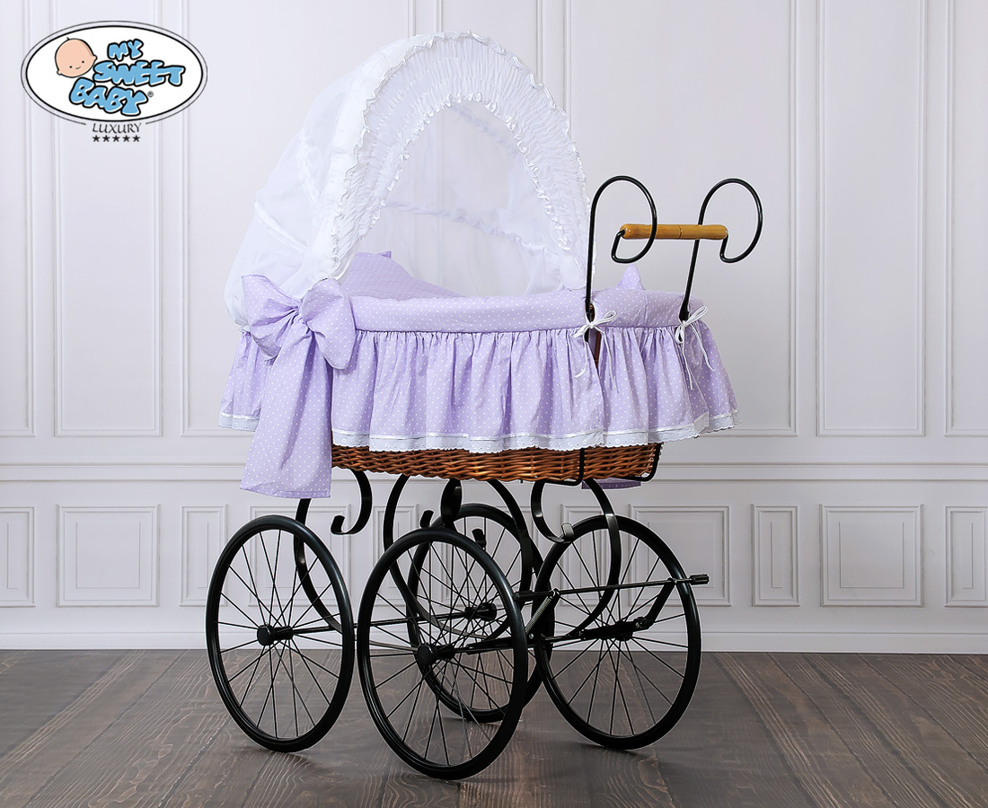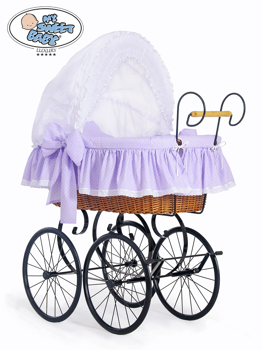 Kleinbaby.nl » Babywiege » Brocante babywiegje » Retro Wiegen voor Baby » Complete Brocante Babywieg Rotan Wit Purper Christine